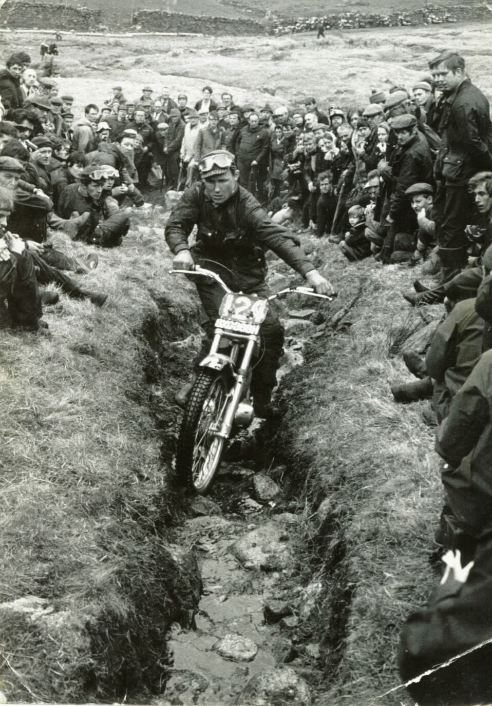 The next thing to happen was Donny arrived. We will never know what went wrong but he did exactly what I was desperate to avoid his front wheel kicked back. Donny landed first, closely followed by his bike and the end result was a broken leg. Oh well, that was that then! – Rob