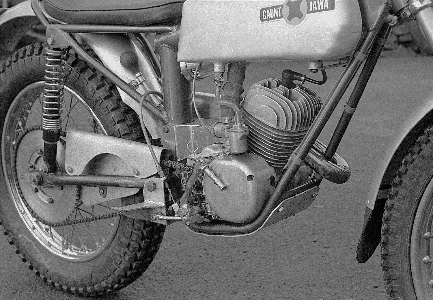 Gaunt developed the James trials machine for the factory as well as creating the Gaunt Jawa; Gaunt Suzuki; Gaunt Ducati and the Otley based Dalesman concern made use of his skills to further develop their Sachs engine trials model for boss, Pete Edmondson.