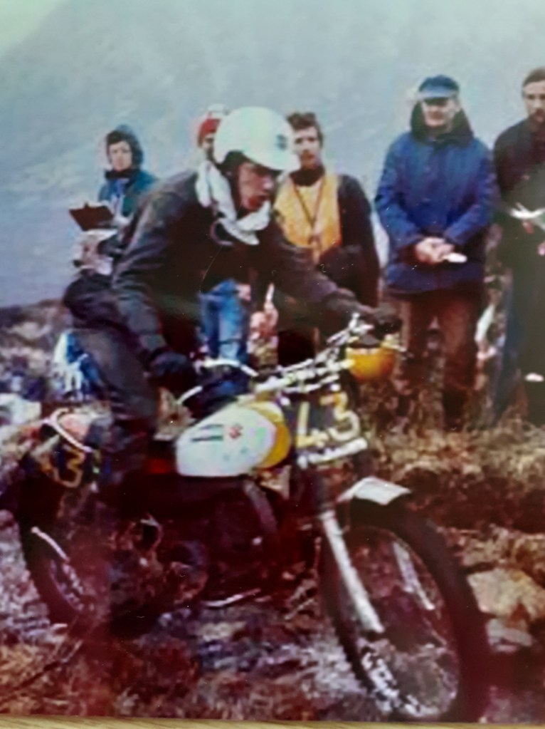 The only tale of note I recollect with the 348 was when the front brake linings came off at Rogart and, for some reason, I refused the offer of the spare “works” set from Rob Edwards for the next day’s Lochaber event – a bad decision as I ended up retiring due to the cross-country work really needing a front brake. I mentioned last time the journey from
