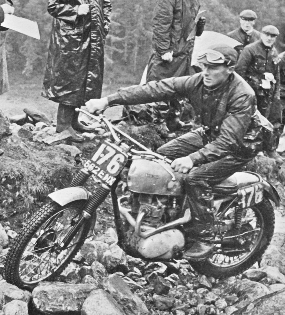 Considering that John Giles had sight in only one eye, he had a remarkable career in motorcycle sport. He overcame the disability and was a determined and forceful rider in scrambles and the ISDT, but also had the ‘gentle touch’ when it came to reliability trials, representing the Triumph manufacturer many times at the annual Scottish Six Days Trial.