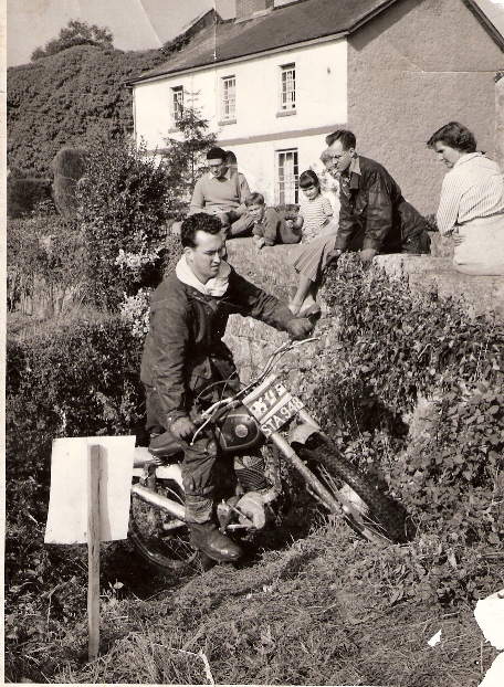 IP: “I was third in the John Douglas one year and rode other Southern Nationals like the Kickham, Hoad and Beggars Roost. I didn’t ever ride the Scott although I was asked a few times by the organiser. I couldn’t afford to wreck my bike what with a wife and young child to support, because it is a bike wrecking trial. I used to do all my own repairs with the help of others like Pete Thompson who would do a bit of welding at the college he worked at, and Bill the Blacksmith at Yealpton used to turn me up footrests when I wanted them. I remember once in the West of England National the old James was rattling so much I knew there was something wrong. Well the route went near Newton Abbot, so I peeled off and went into Freddy Hawkins shop and asked them if they had a new barrel and piston. They did, so I had it and said I would pay them later. I took the bike around to the workshop took off the head, barrel and piston and fitted the new ones and carried on in the trial. It took me about twenty minutes.”