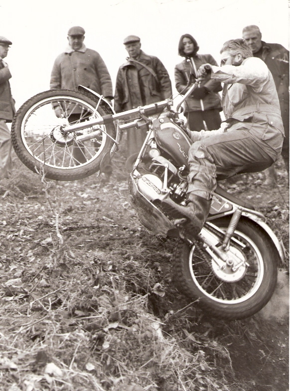 “There was that time when Mike Rapley came off his Bulto when the brake linings came adrift from the shoes in the front wheel at a Morton trial. His thumb was dislocated and stuck out at right angles from his hand, he was in agony so I caught hold of it and pulled it up and out and back into the socket. I think he was grateful? Another time it was up at John Lee’s farm near Tiverton; he fell and dislocated his leg. We laid him on the ground and I pulled his leg down and back into the socket. He yelled at me and always said afterwards: ‘Keep that bloke away from me’.”
