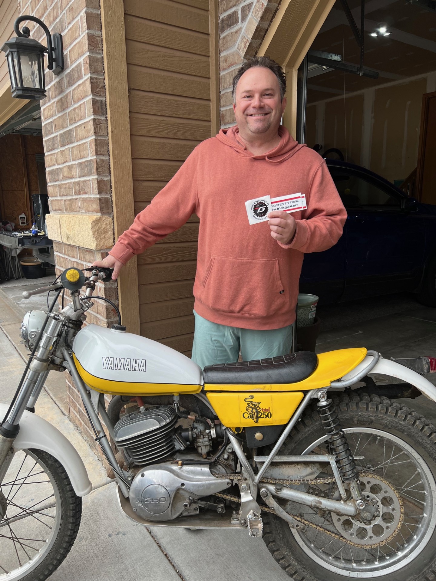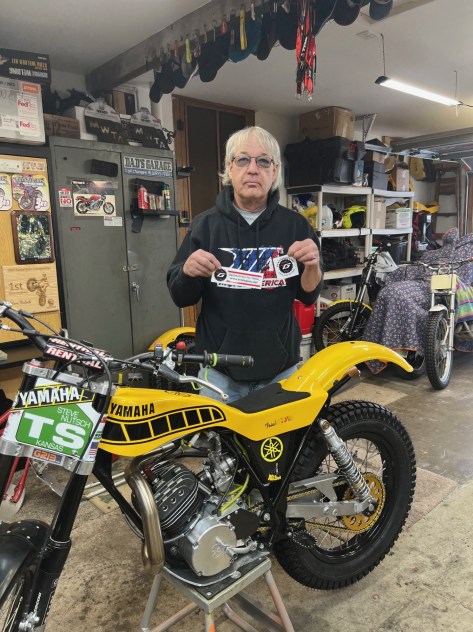 Here we have two Vintage Trial, enthusiasts from Kansas in the USA, proudly displaying their decals with their Yamahas.