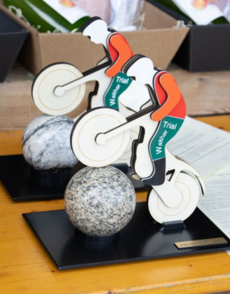 The award itself is hand crafted with a stylised trials rider with the front wheel placed upon a sphere of polished solid granite stone, which is specially made by Walther Luft himself.