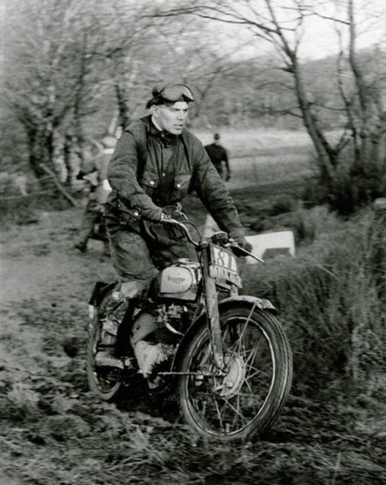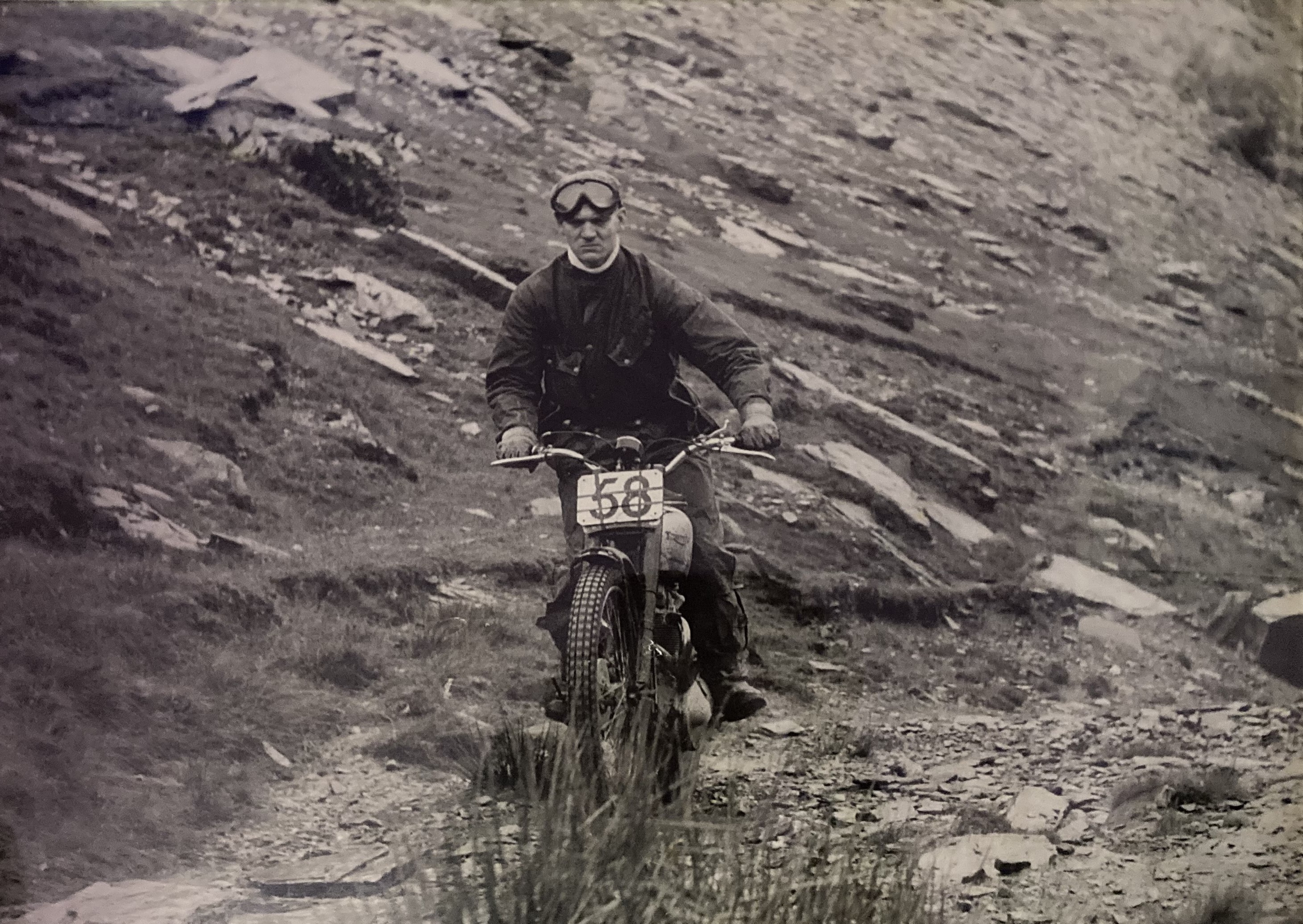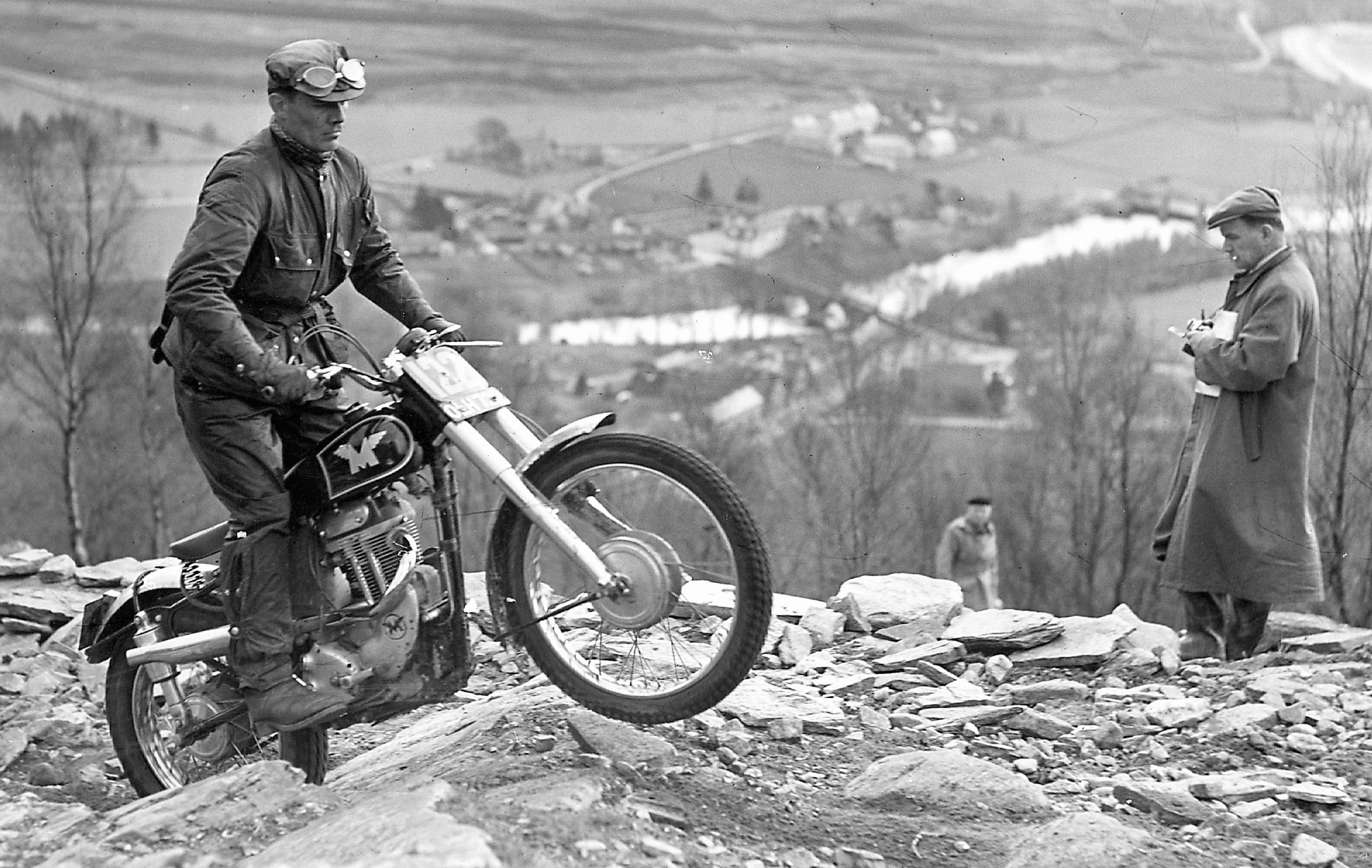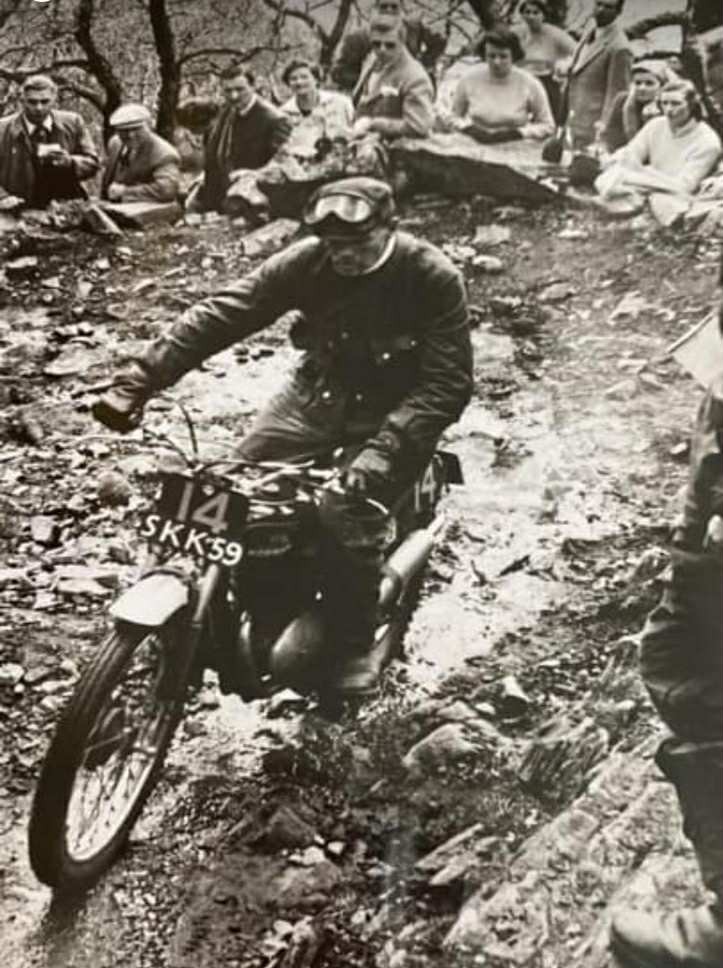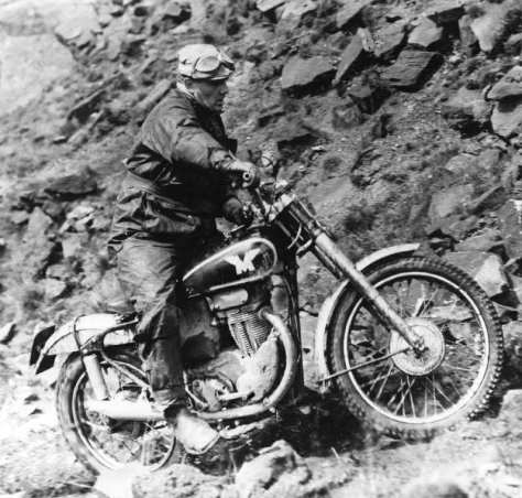 During this time Sid’s attention was captured by motorcycle trials and his first event was in 1947 on an AJS with girder forks, winning the Best Novice award in the Beggar’s Roost national trial.