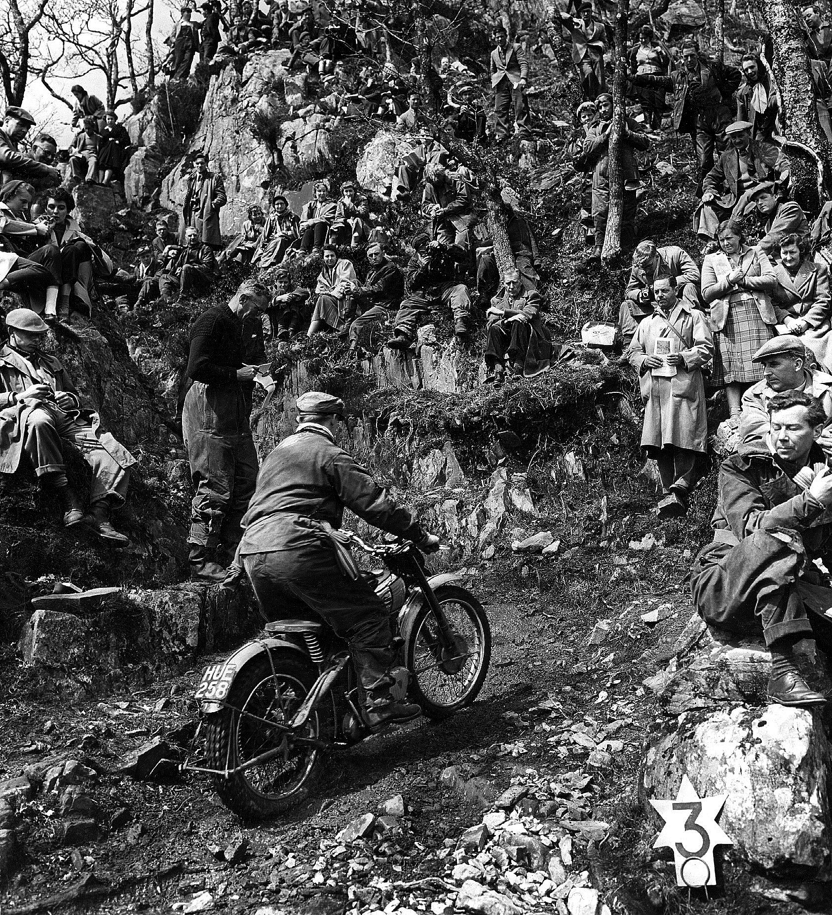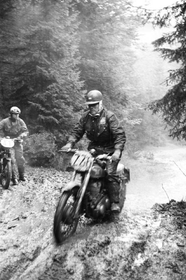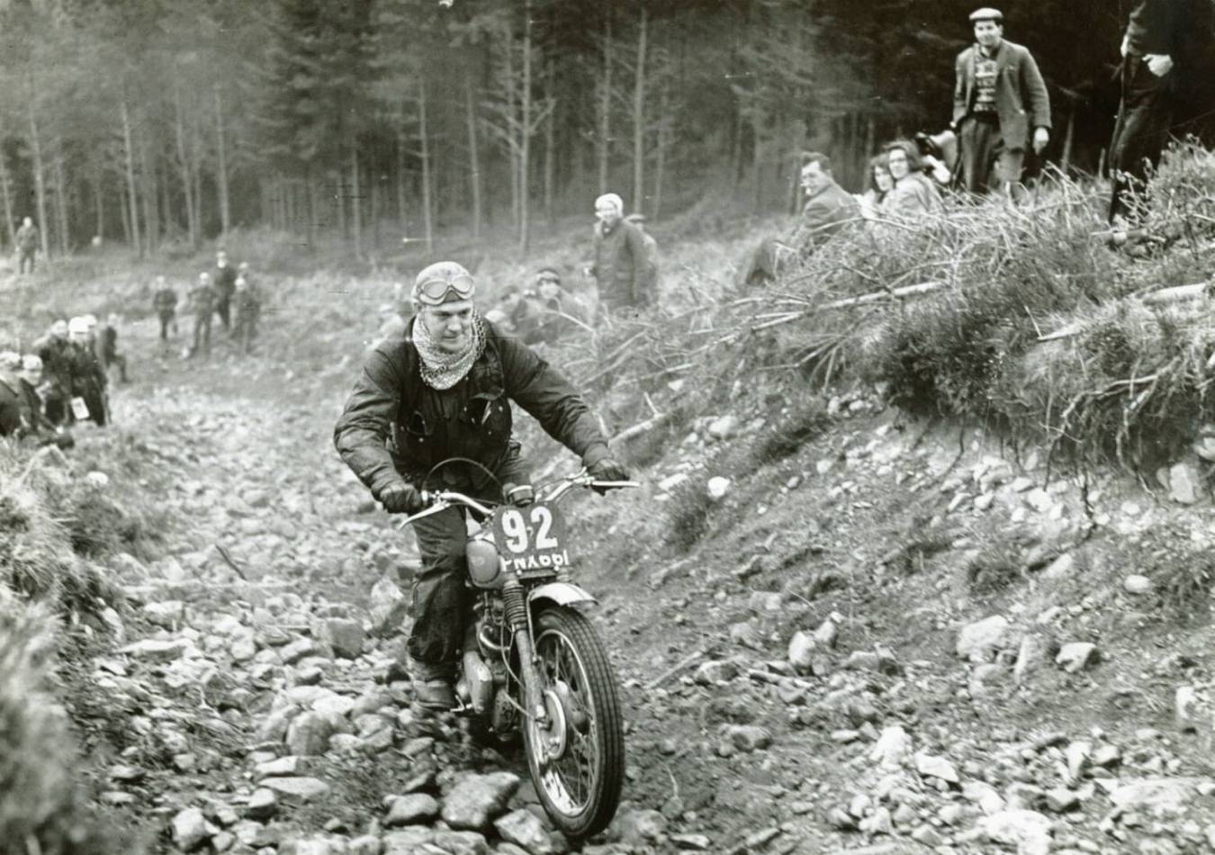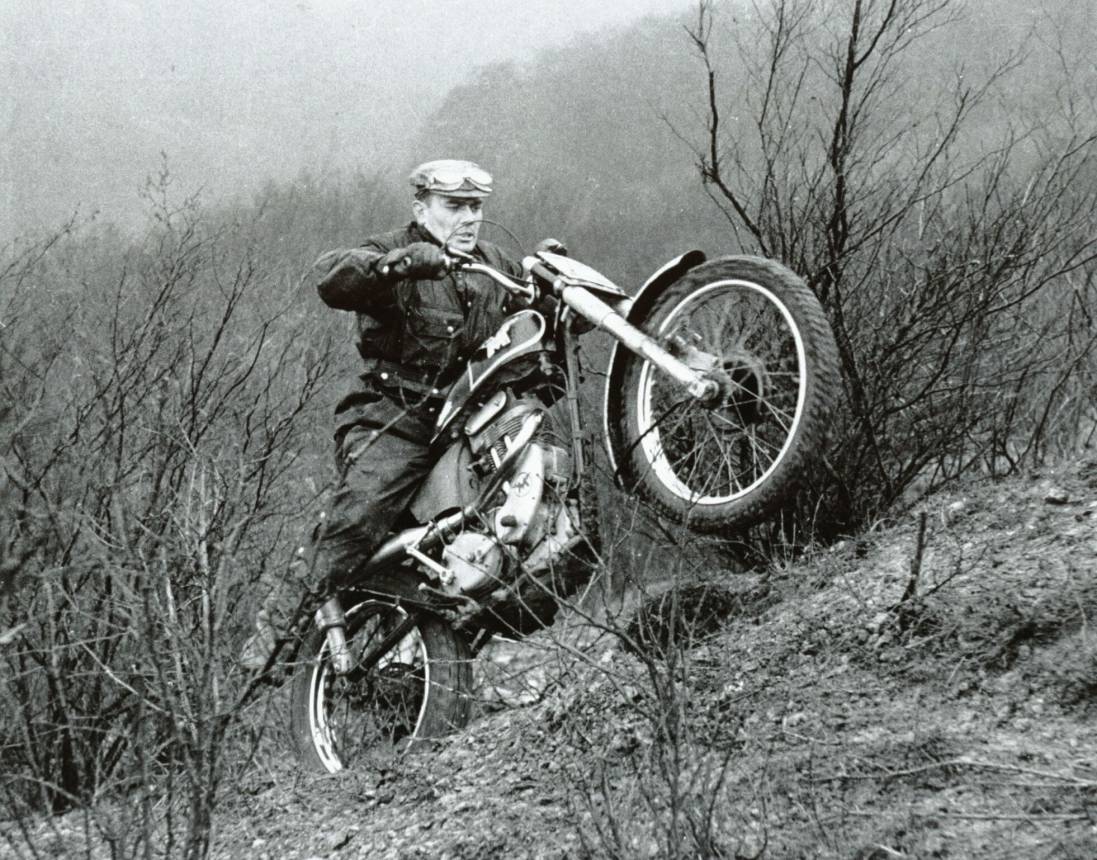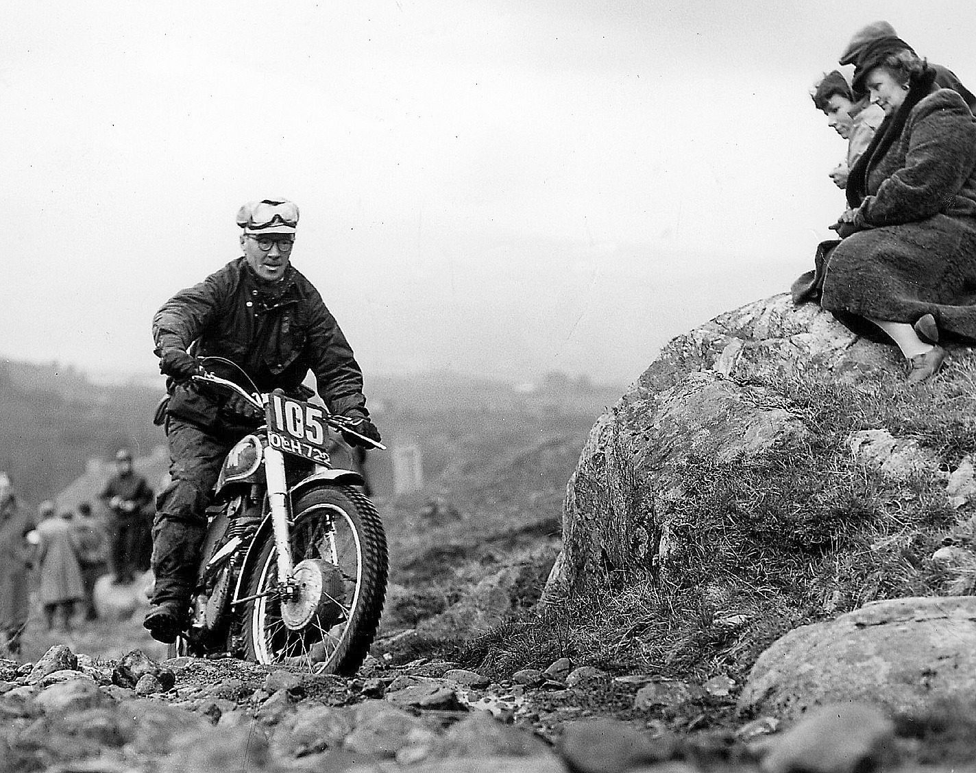 During this time Sid’s attention was captured by motorcycle trials and his first event was in 1947 on an AJS with girder forks, winning the Best Novice award in the Beggar’s Roost national trial.