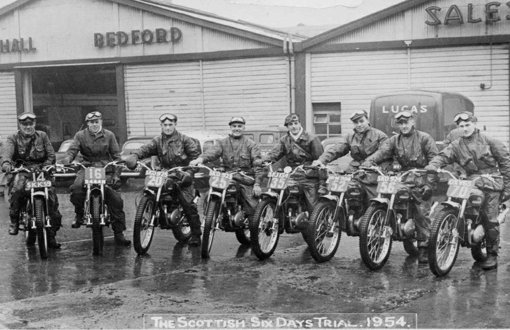 Sid managed to convince the local Norman factory to support him for the forthcoming 1954 Scottish Six Days Trial. The factory fielded an eight man and machine team effort that year and provided Sid with a used machine, registered SKK59, it required a comprehensive rebuild and he only received the machine the week before the Scottish. This resulted in taking the bike up without its wheels in the lift in Putney and making it ready and reliable for the 1954 Scottish in the kitchen. The factory supported Norman riders for 1954 were: Karl Pugh, Brian Butt, Gerry Mills, Clive Mills, Don Barrett, G. Russel, Ray Peacock and Sid Wicken.