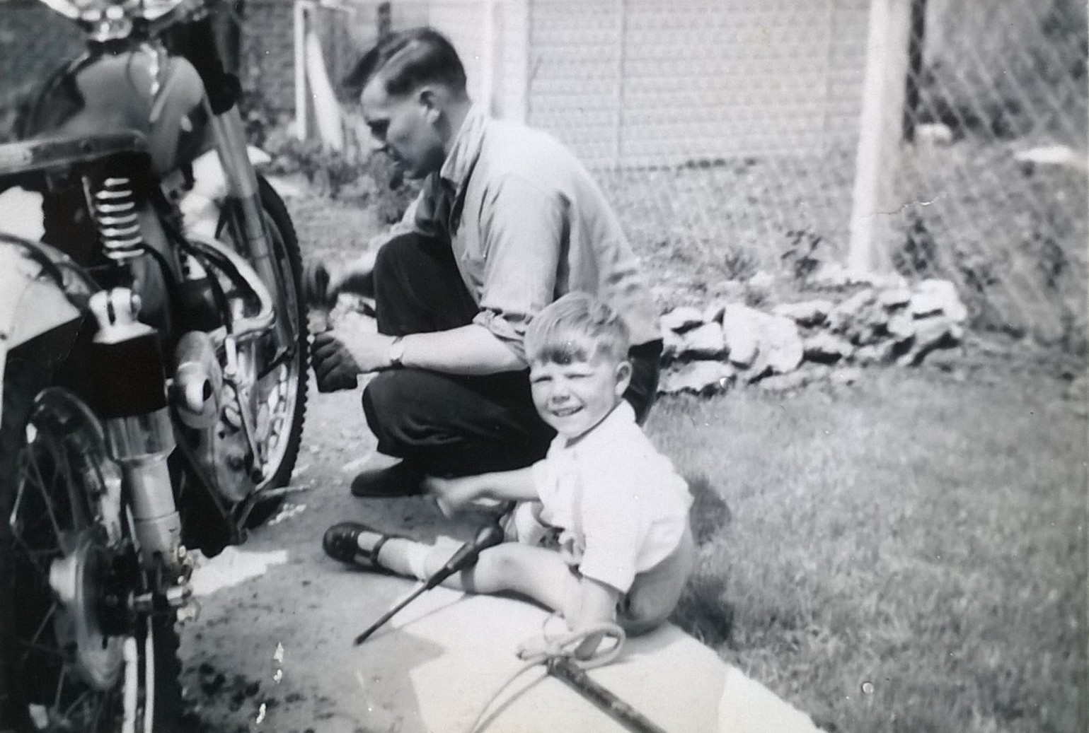John Edward Wicken, known as ‘Jack’ was born on 3rd September 1927 in Woolwich with brother Sid, born two years later. As mentioned earlier, Sid senior had the motorcycle and sidecar combination and as kids, Jack would sit on the back of the bike and brother Sid would be in the sidecar with their mother, Beatrice or ‘Beat’ as she was known. Both were introduced to bikes at a young age. Jack always maintained that his driven nature came from his mother, Beat was a force of nature, a serious character and massively proud of her two boys. The brothers were very close, life-long friends and very competitive. The second world war was declared on Jack’s twelfth birthday.