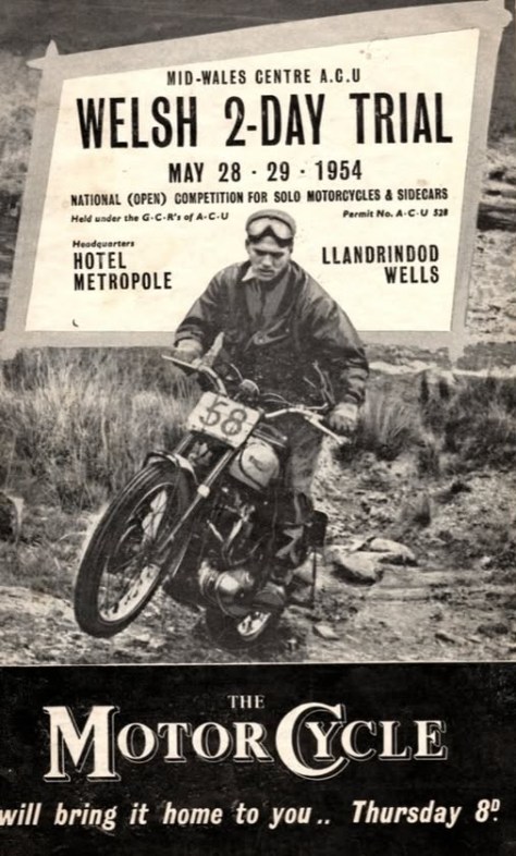 It is believed that Sid had been loaned an AJS from the factory from time to time, as well as outings on a factory Triumph, but he accepted Karl Pugh’s offer to ride for Norman in April 1954. Sid had also struck up a friendship with the doyen of trials commentating, Ralph G.V. Venables.