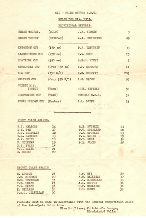 There are many reports of Jack’s successes, the most notable being the Welsh Two Day in 1953.