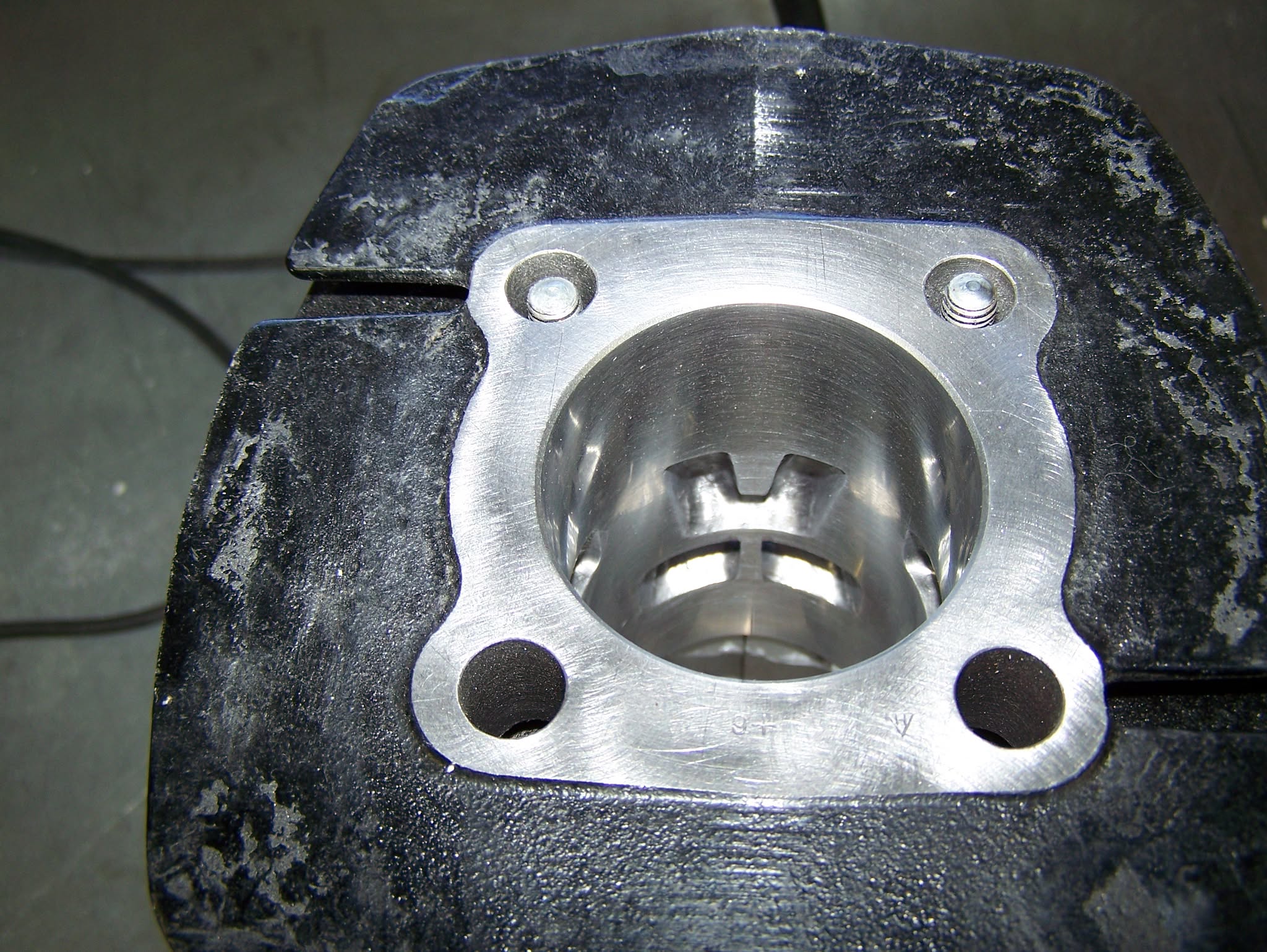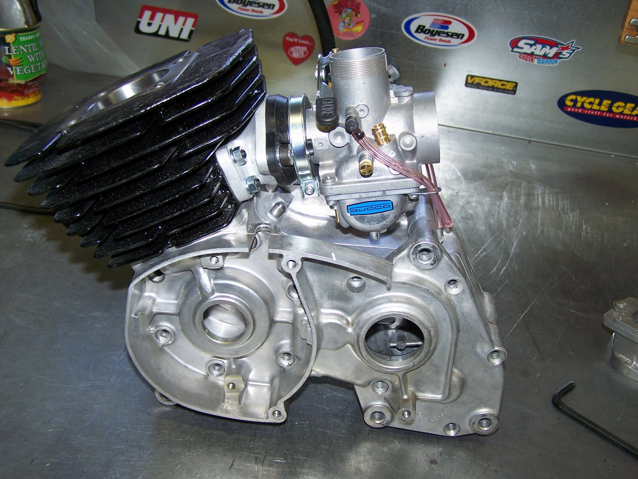 “We arrived at 152cc by utilizing one piston of the Bridgestone 350 twin, and on the other bike using a piston from a Villiers 200. In addition, on one or both, the barrel to bottom end was modified to tame the port timing.“