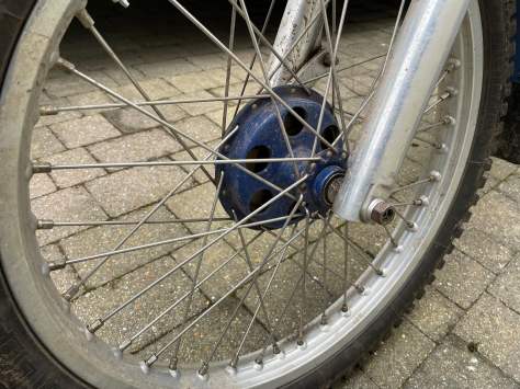 The polished alloy fork legs and conical polished alloy, six inch diameter REH wheel hubs set the machines apart from the then current offerings from Spain.
