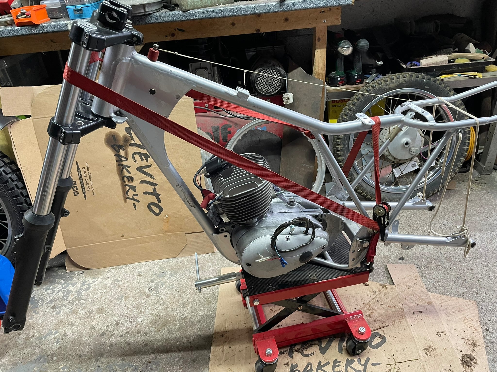 “It has for years been used by Brian in the Cotswold trials and still is by myself, I use it regularly. The frame has been modified before my ownership with two tubes under the engine instead of one.“