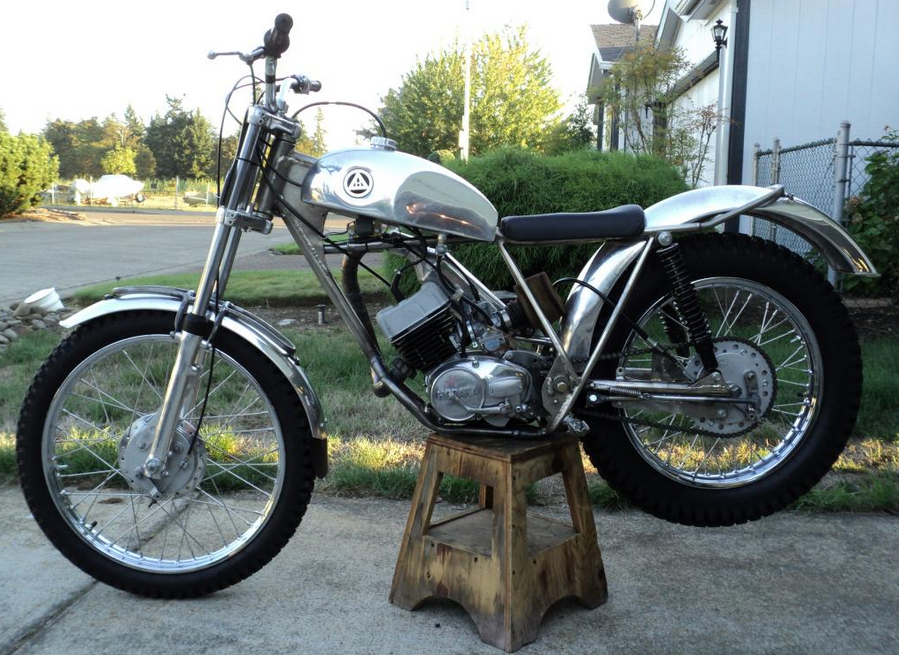 “This was a very special piston ported two-stroke American Hodaka trials engine, which began life as a 125 cc ‘Wombat’, but this one has a heavier flywheel, lower internal gearing via primary gear from an ‘Ace 90’. Porting was done by the porting guru, Rich Gagnon from Utah.