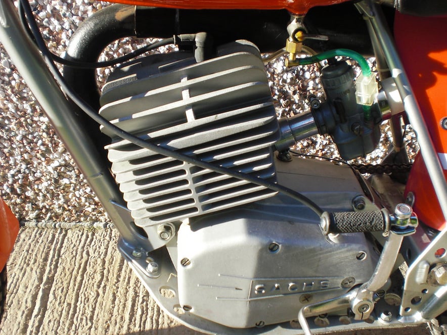 A significant number of the iron barreled Sachs model were sold, mainly to the United States. When Sachs introduced the alloy barrel and head, with a greater power output, an order for forty models for the States was in hand, so the alloy motors were fitted and a container loaded with the forty bikes. Checking delivery details with the stateside customer, Ron gave him the good news that the bikes had the alloy motor, wherupon the customer said that he didn’t want the alloy motor, but the iron barreled model, and it was the cost of that thwarted shipment of forty bikes that proved impossible to fund that would eventually take the company down.
