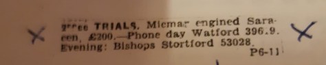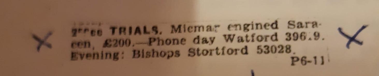 Trevor Kemp: “I own a Saracen fitted from new with a 250cc Mickmar engine and have done so for many years in fact. A very good and local trials rider friend of mine, Alan Garrett bought it from David Brand via an advert.
