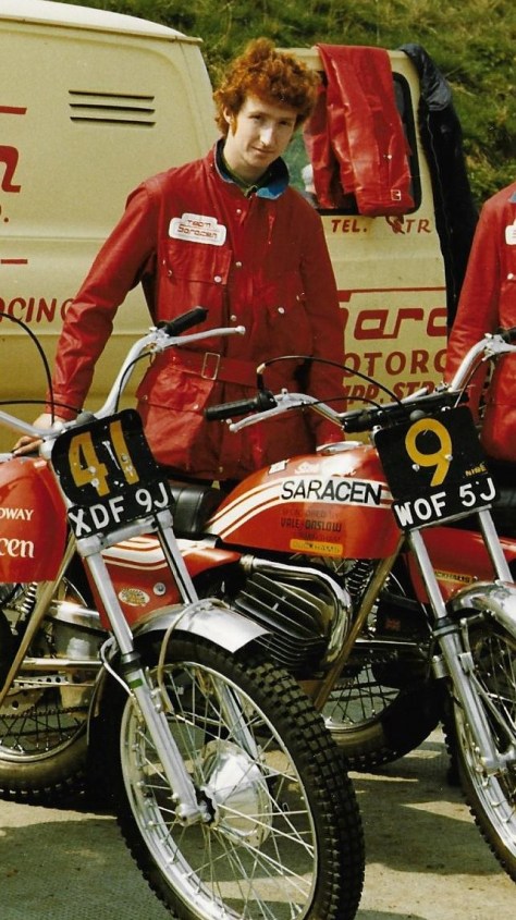 Well-known trials rider, Jon Bliss from Cheltenham had been involved in plumbing and heating as a trade, but jumped at the opportunity to work for and build trials bikes with Saracen in Cirencester, not far from his home in Cheltenham, Gloucestershire. He would ride the Scottish Six Days twice on Saracen, then a third and final time at aged 50 in 1989 on a 250cc GasGas.