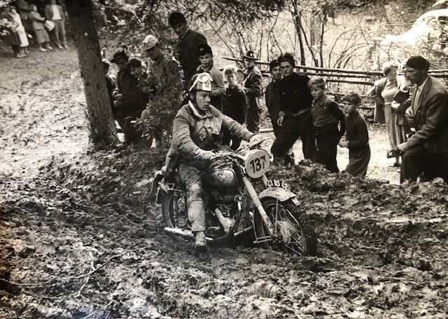 He started trials riding with his local club, the Farnham Royal MC & LCC and he went on to compete and represent Great Britain in several International Six Days Trials, including one for the army whilst doing his National Service.