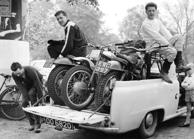 Greeves were a force to be reckoned with in off road motorcycle sport in the early 1960s, here is Malcolm Davis, Peter Stirland and Don Smith getting ready to travel to an event in Europe in 1963 – Photo: Smith Family Collection