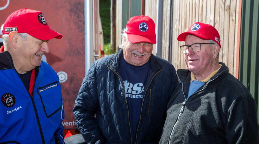 John Moffat with Tony Davis (centre) and Alan Lampkin at the 2024 Highland Classic Two Day Trial at Aviemore – Photo: Gordon Bain Photography, Inverness