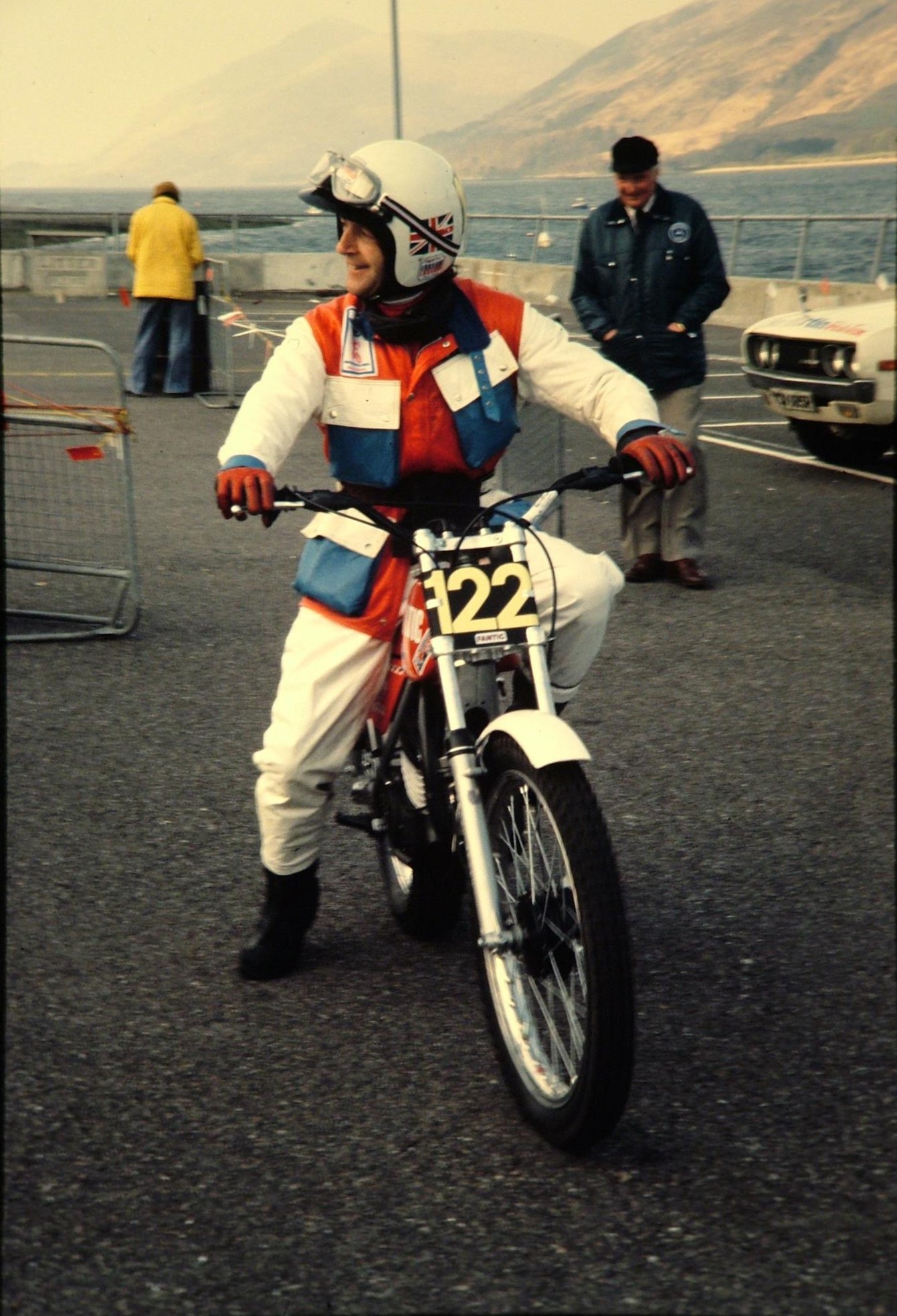 Don Smith, immaculately dressed at the start of the 1978 SSDT, Fort William on the 125 Fantic – Photo: Jimmy Young, Armadale