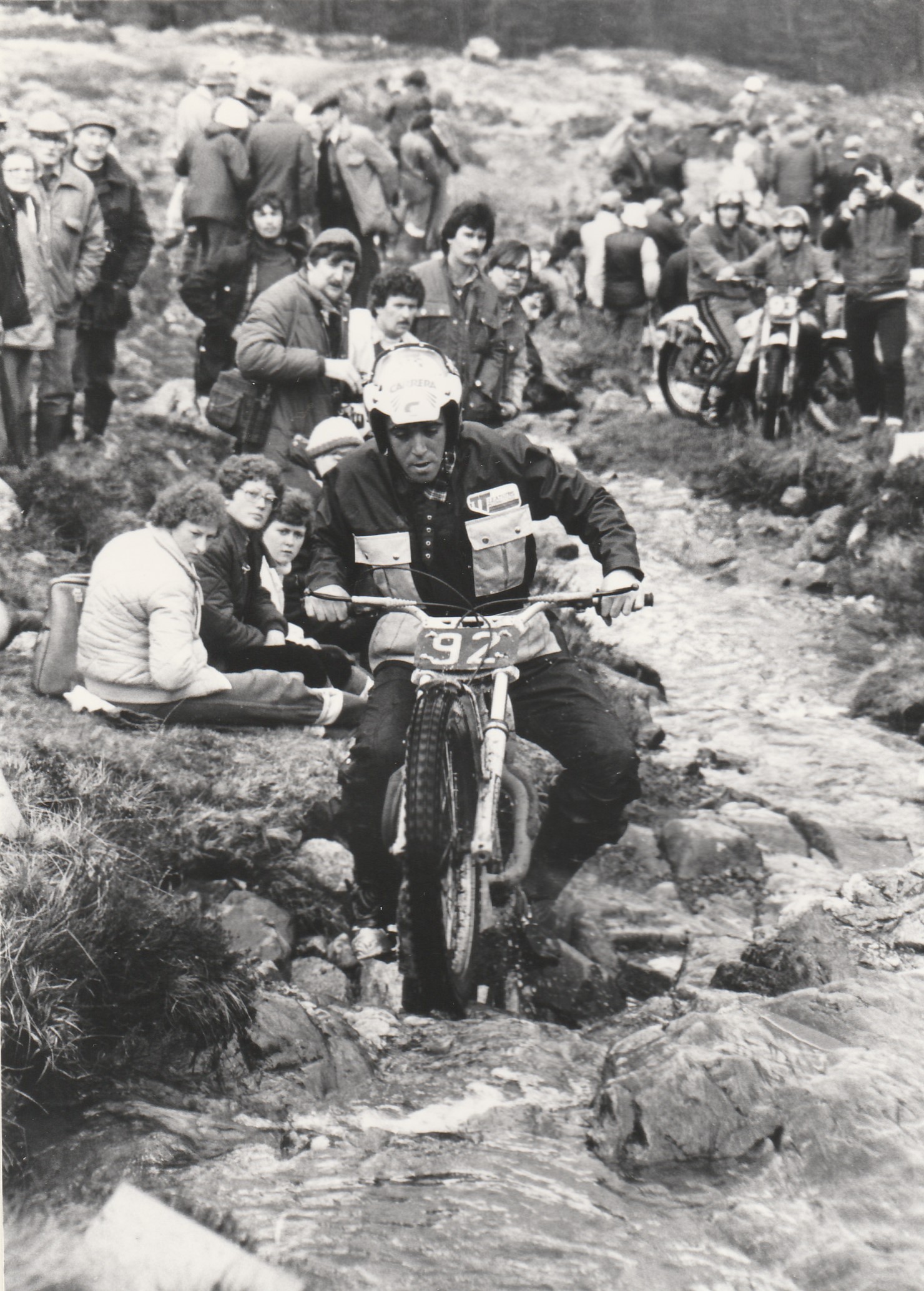 In 1969 John purchased a new Bultaco which he rode to a trouble free Scottish gaining a “Special First Class Award” (All-in-all John rode the Scottish Six Days Trial nine times, retiring twice and gaining “Special First Class Awards” in the remaining seven). At Crediton, on this Bultaco John also won his first Premier at an Open-to-Centre trial. He had by now started to enter and ride the Nationals, the Greensmith, Hoad, Perce Simon, St.Davids, Dulis Valley, Victory etc, not forgetting the West of England of course; he was runner-up to Sammy Miller in the Lyn National.