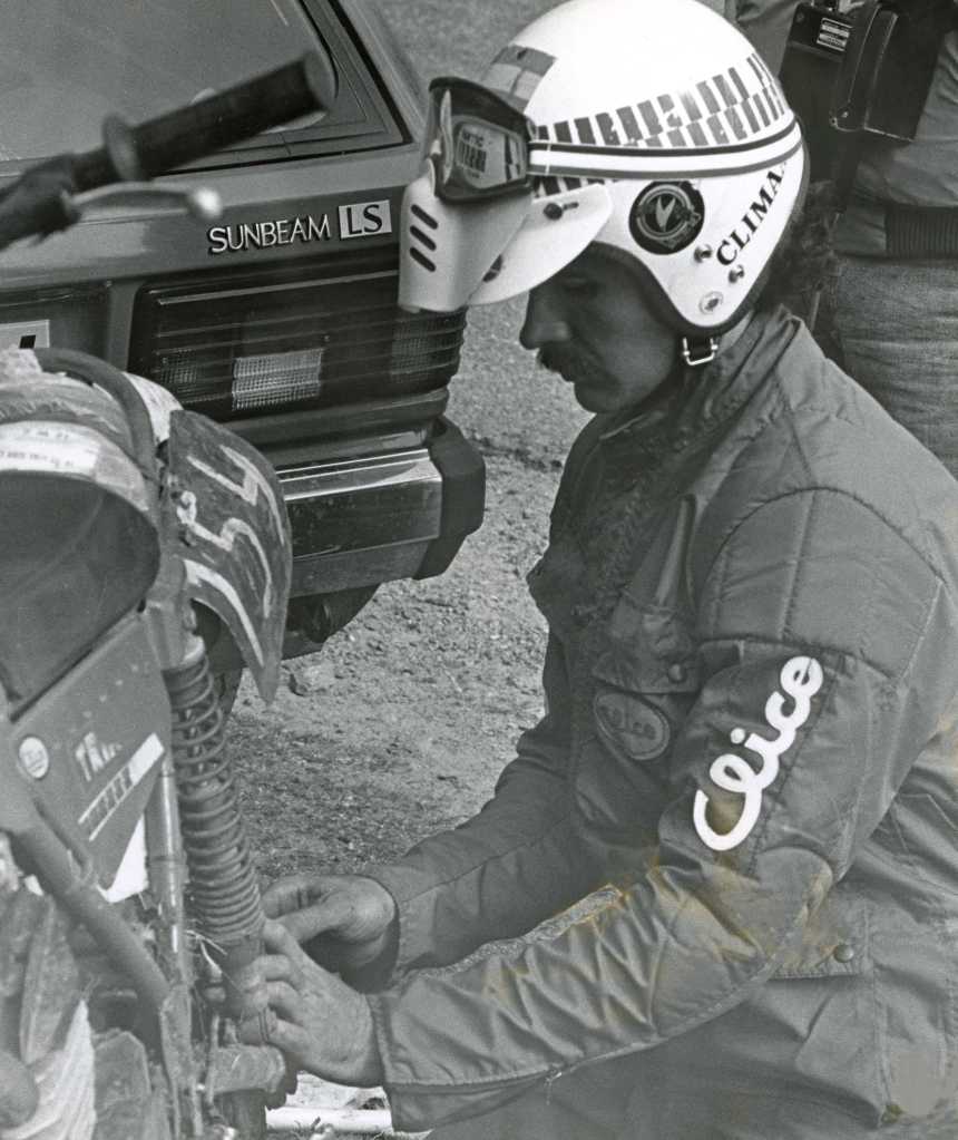 Jaume Subira working on his 159 Fantic at the 1980 SSDT, he was 5th on 114 marks – Photo: Glenn Cairney