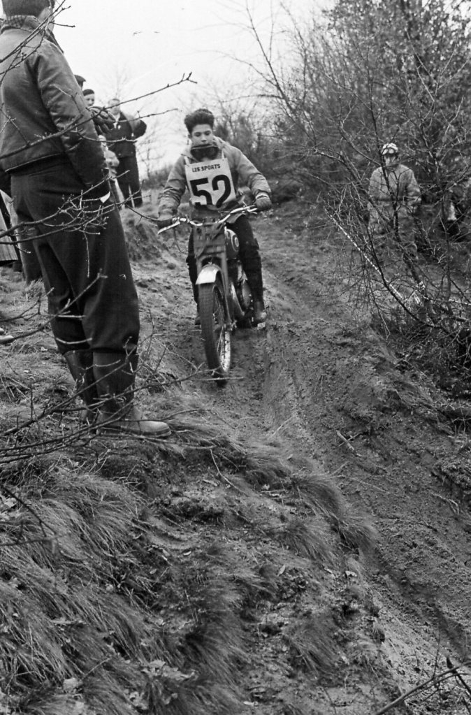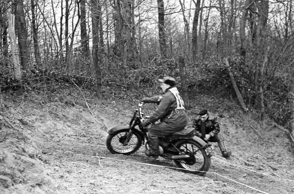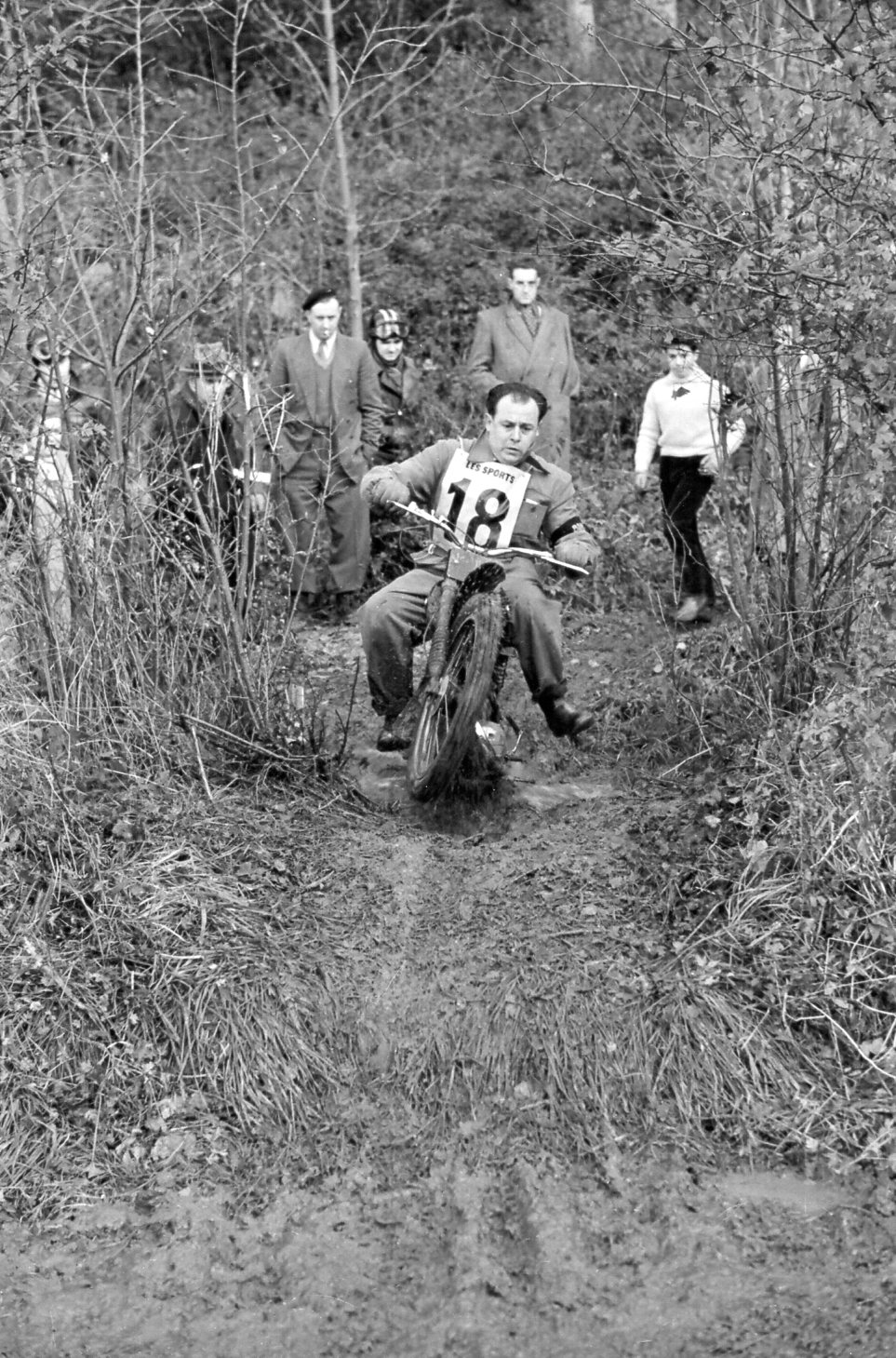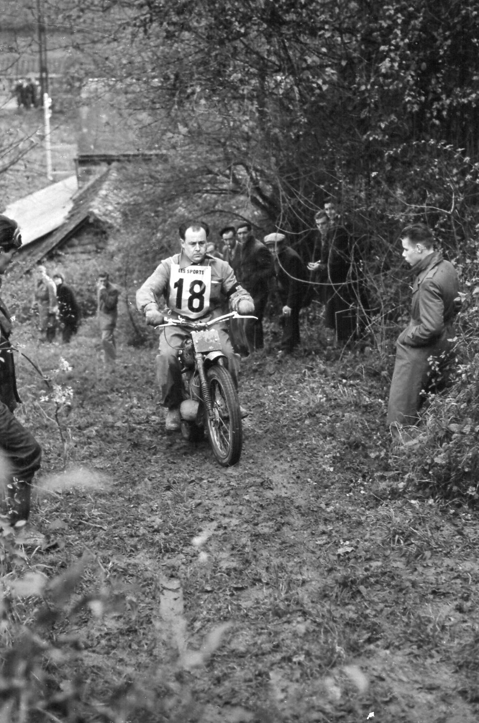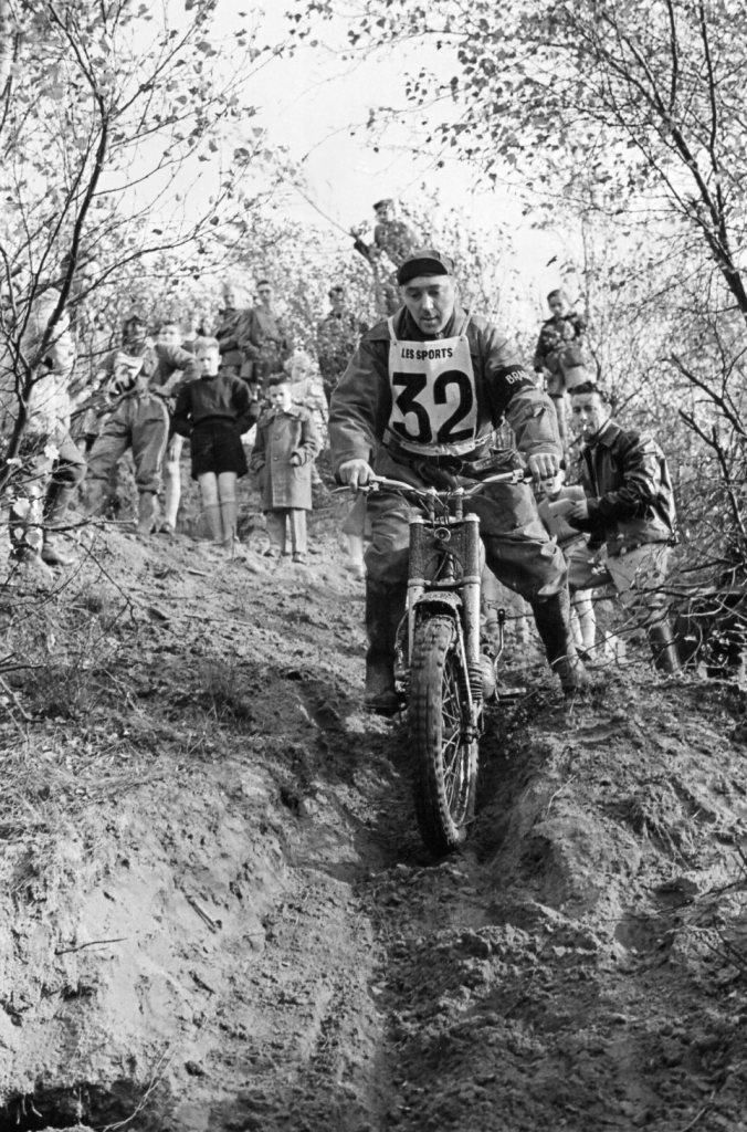 Trials started in Belgium in 1934, thanks to Jacques Ickx, father of the famous motor racer, Jacky Ickx. Jacques was a car journalist In the 1950s and two makes of machines were popular: big single cylinder four-stroke machines from the UK and local manufactured bikes from Belgium, these were Sarolea and small capacity two-strokes from Belgium such as Salira, Socovel, FN. All these pictures were taken by Louis Nassogne.