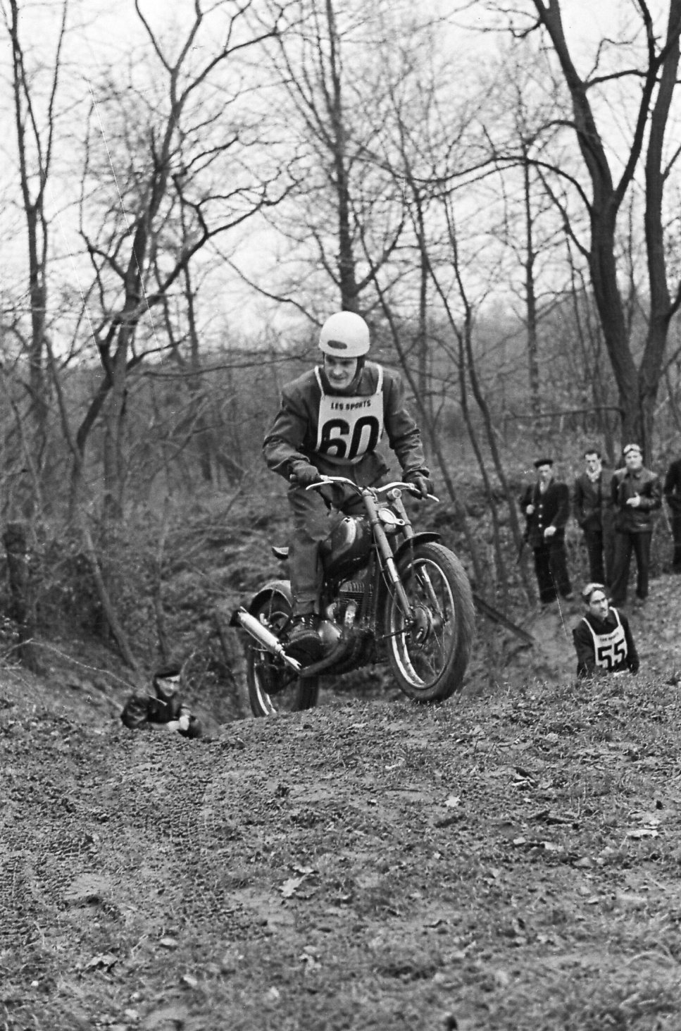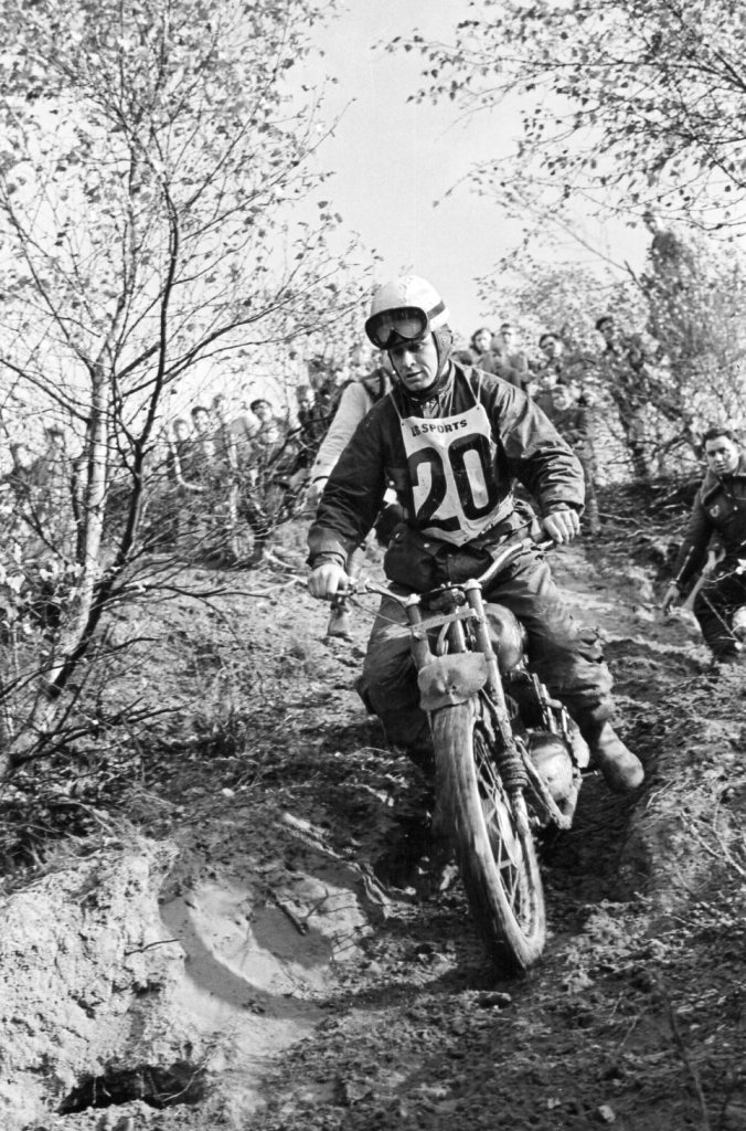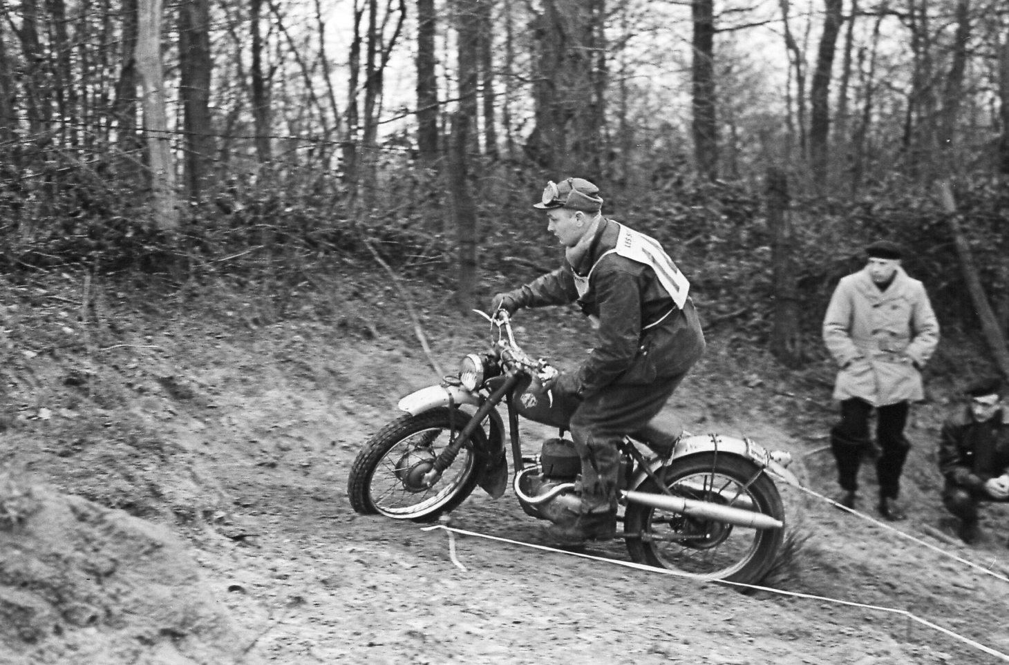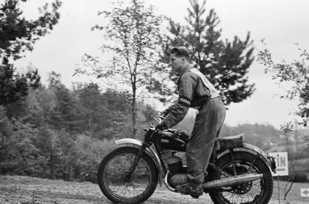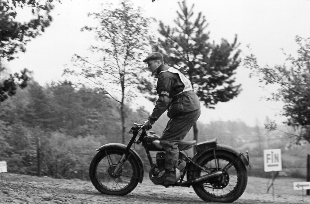 Trials started in Belgium in 1934, thanks to Jacques Ickx, father of the famous motor racer, Jacky Ickx. Jacques was a car journalist In the 1950s and two makes of machines were popular: big single cylinder four-stroke machines from the UK and local manufactured bikes from Belgium, these were Sarolea and small capacity two-strokes from Belgium such as Salira, Socovel, FN. All these pictures were taken by Louis Nassogne.