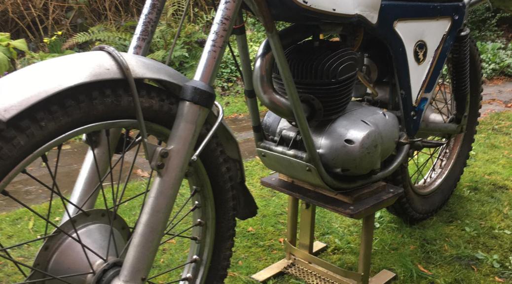 “What started it off was when I had slung my leg over the Dalesman Puch 125T that Peter Edmondson supplied to Mr. Birrell in April 1969 for the SSDT stewarding duties. It was delivered to our house in Bathgate and Jim Birrell picked it up from there. My Dad had done a deal through a British Road Services contact at their Guildiehaugh, Bathgate depot, to transport the bike up from Otley. That initial contact made me realise that I wanted to be a motorcyclist and to ride in trials like my Dad, I was 11 years of age. I remember going over to Markinch with my Dad in the October to look at the two ISDT bikes that Jim was selling and my Dad chose PSG565H for me, the machine that Ernie Page had ridden, still with it’s race number ‘V62’ in place. The bike had blobs of light blue and red with that number inscribed and the cylinder head was wired to the cylinder barrel with an ADAC lead seal still intact. I still remember the engine number which was 3690609.“