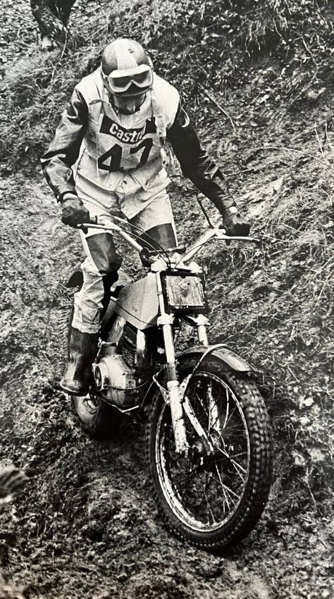Known as the Welsh Sammy Miller for his similar dedicated and determined style, he lived his whole life in the small village of Newchurch in Radnorshire near to the English border. Although a farmer’s son, he trained as a mechanic excelling at bodywork. He started riding trials in the mid-sixties for his local club Builth Wells and he was soon challenging for wins locally and like many trials riders of the time progressed from local to national trials getting amongst the awards on a regular basis. He won the Welsh Trials Championship on four occasions which qualified him to ride in the British Experts held locally at Rhayader. Also he won the Mid Wales Centre Trials Championship on five consecutive occasions from 1967 to 1972 with the exception of one year due to foot and mouth disease.
