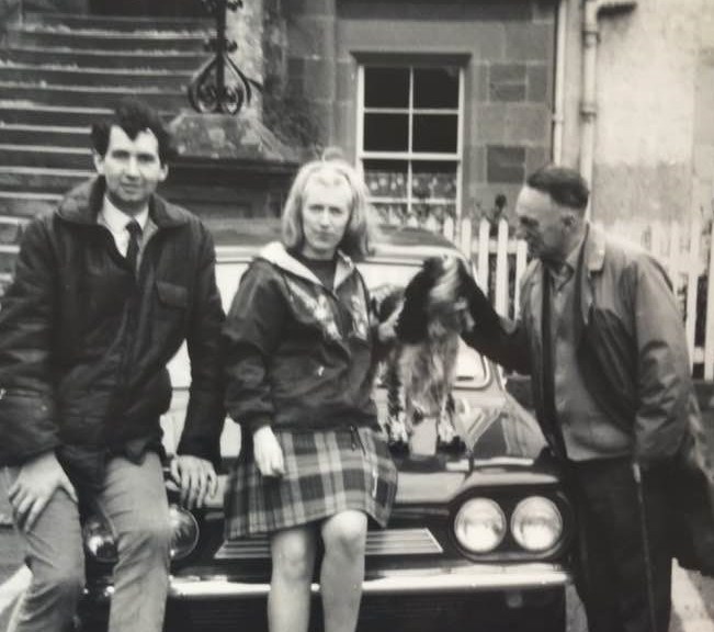 Margaret Muirhead (centre) pictured here with Tommy Milton Jnr (left) and Edinburgh Southern stalwart, Jock Hurst (right) – Photo courtesy, Peter Bremner