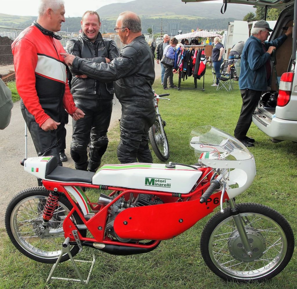 A marvellous bike builder, he fettled a little Minarrelli road race/sprinter, competing at the Isle of Man Ramsey Sprint not that long ago. Later in life Frank slipped off and broke a hip at Scarborough. Before anyone reached him he`d ridden side saddle back to the pits. Typical Frank, hard as nails.