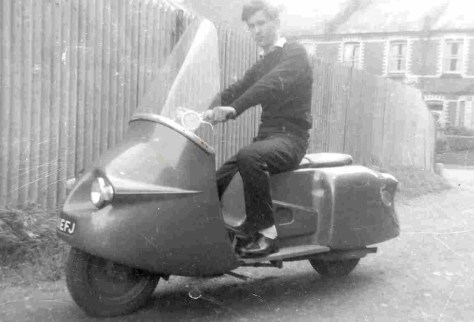 MN: “My interest had not always been in competition but I did have one road bike. I started off with a Harper Scootamobile which had been made at Exeter Airport as a design project, and I used it to go to work as I was an apprentice there. I had become enthused by two characters who worked there, Arthur Brown, a good all rounder in scrambles, trials and sidecars, and also Bob Melhuish who sometimes gave me a lift home on his Greeves Scottish. They advised me to go to a scramble they said would be a good one to start at. It was a world round at Glastonbury in 1962. When I saw Dave Bickers and Torsten Hallman going around that Tor circuit- I knew that level of riding was beyond me.”