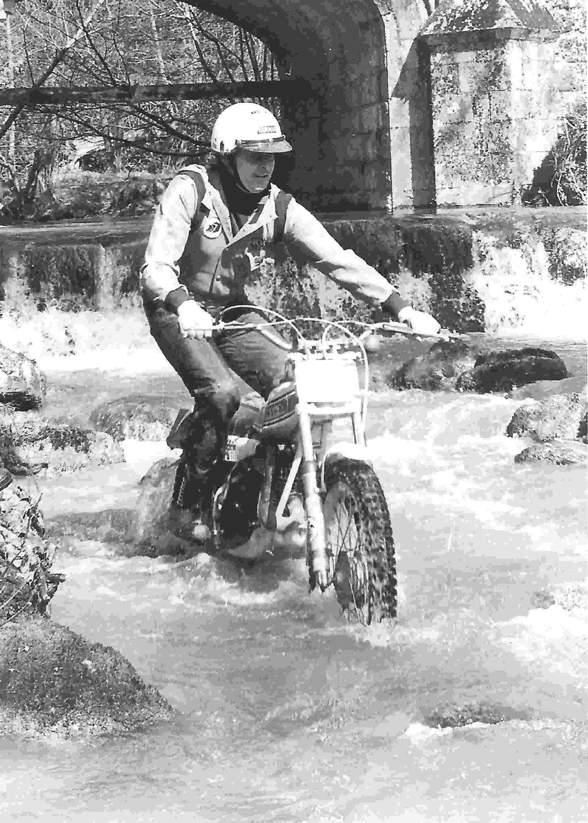 Bill also keeping fit with line dancing with his wife at the local village halls where he got quite a reputation. In fact Bill, according to a photograph in Derek Wylde’s column in TMX News, was ‘A dab hand on the dance floor and a dab foot in the stream’. The dab in the stream was somewhat of a feature of Bill’s riding as he is the first to admit, although he reflects that many a time he finished up underneath his bike. Never deterred he would always get up and with a friendly curse to the bike and section and then would carry on.