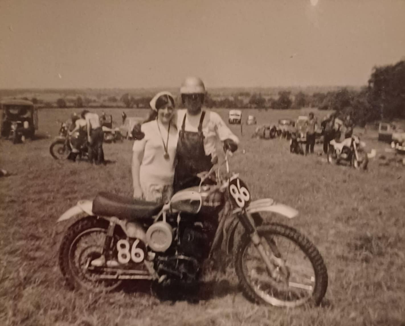 Linda and Hedley Ashford (250 Husqvarna) at a scrambles event at Witham Friary in 1968 – Photo: Ashford Family Collection.