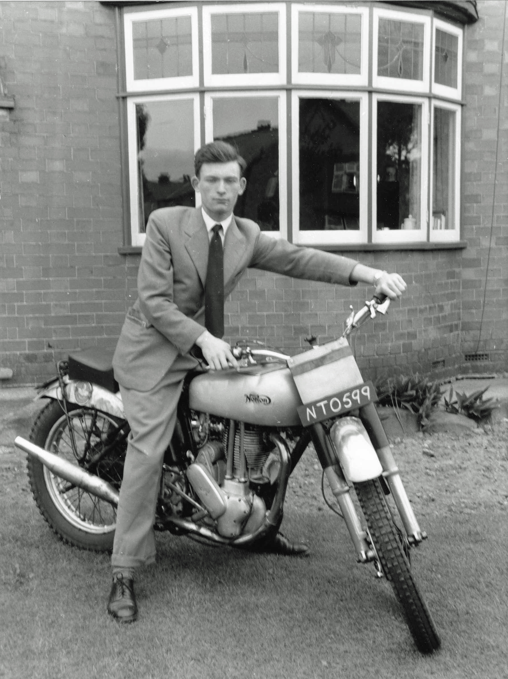 Morley – “I joined The Pathfinders & Derby MCC and the Derby Phoenix as a youth and though without a machine, I helped out at trials, scrambles & road-races. I finally did legally get myself another motorcycle in 1953, and subsequently acquired a 500T trials Norton on which I went to work, trialled, scrambled and even road raced and did my courting on. I became close friends with world racing champion Bill Lomas; John ‘Moon-eyes’ Cooper; David and Jon Tye; Norman Storrar and Barrie Rodgers, my wife and I became godparents to Barrie’s eldest daughter”.