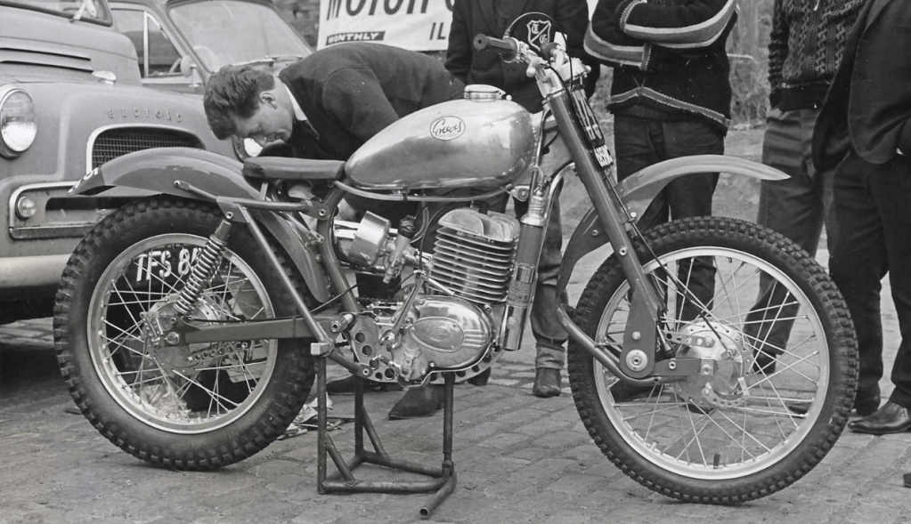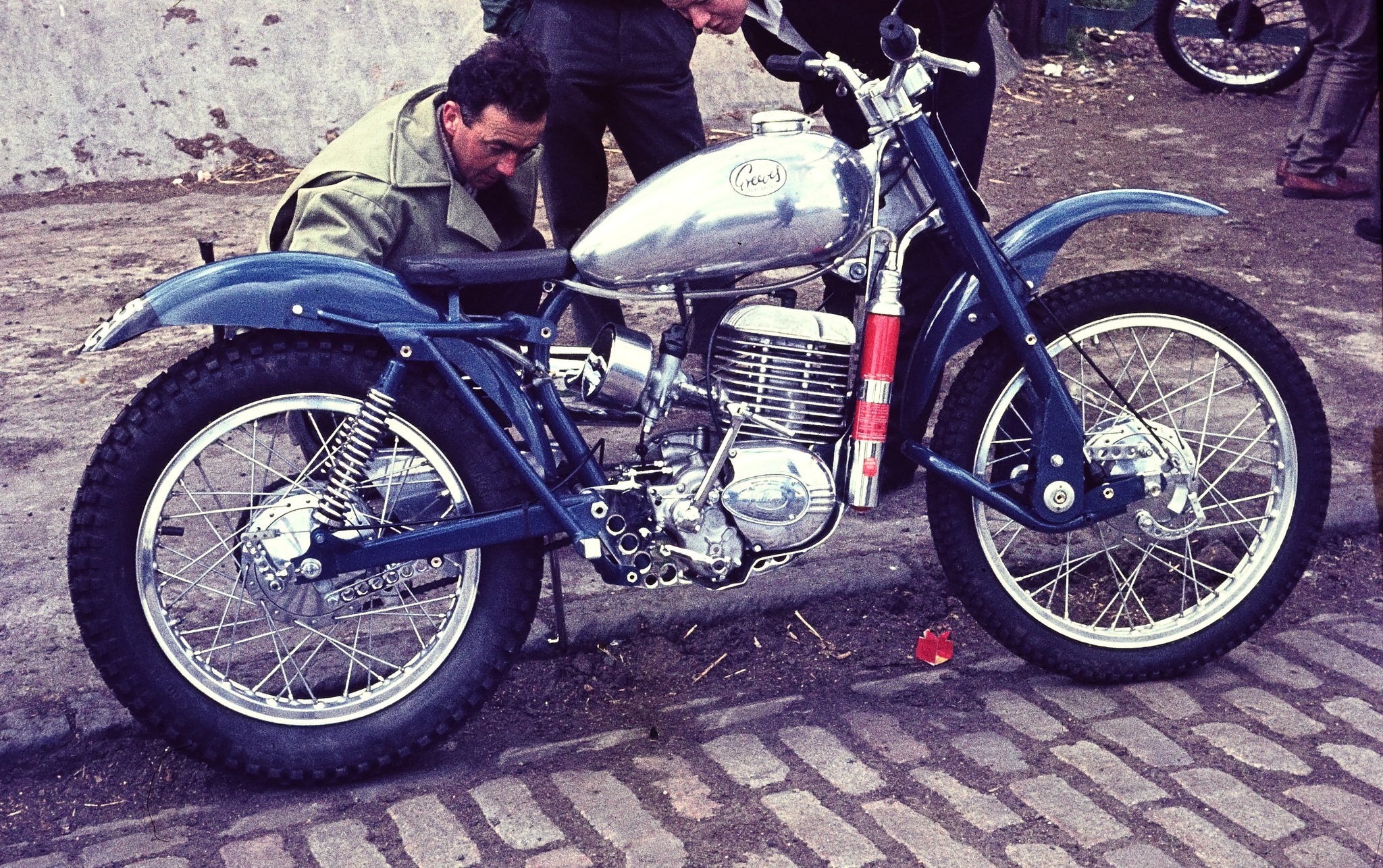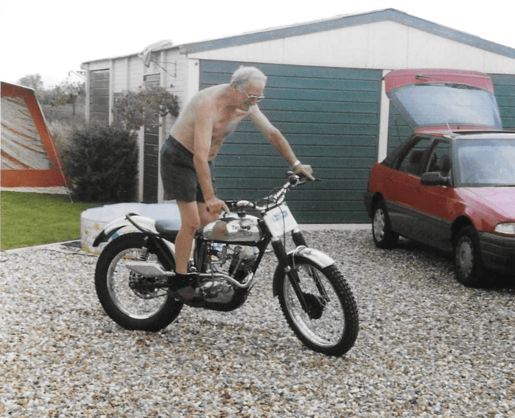 He had, by now, pretty much given up scrambles to concentrate not only on his new business, but on competing in trials. He had become quite successful at scrambles riding a home brewed TriBsa when working for Derrick Cornell.
