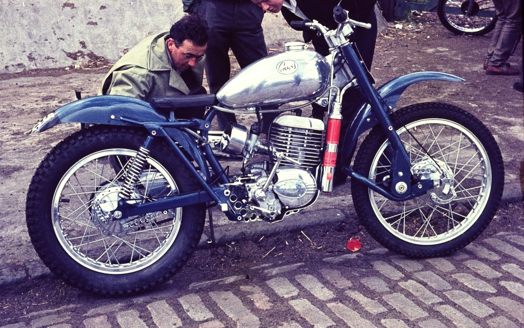 “My friends were older than me and some of them have made motorcycles to ride with in the nearby forest, it is a sport they call ‘Trials.’ That is how I found myself one Sunday in 1962 as a spectator at the St Cucufa trial, held in wooded area in the suburbs of Paris, a very famous event where the best European riders of this discipline perform and especially British Riders reputed to be the best in this field. I was very excited to discover the names are given to me, Sammy Miller, Gordon Jackson, Roy Peplow, and a man named Don Smith who in fact came out big winner of the event that day with a curious machine that I had never seen before a Greeves motorcycle with a very curious front fork. It seems for the time to be completely unusual. This was completely designed for trials riding. Don Smith does wonders in riding this machine, so I had only one desire, to be able to ride this bike one day which seems fabulous to me.