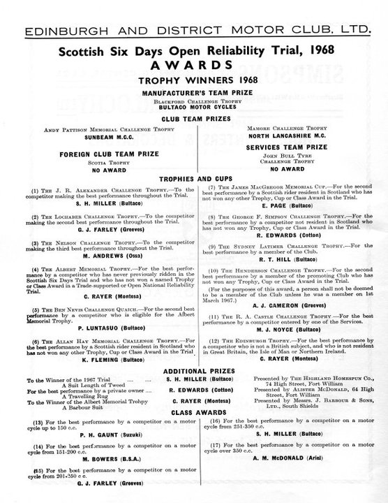 This was the year of the first major outbreak of ‘Foot and Mouth’ disease and many trials events were cancelled due to travel restrictions. Don’s Bultaco still exists and is now in a private collection in France.