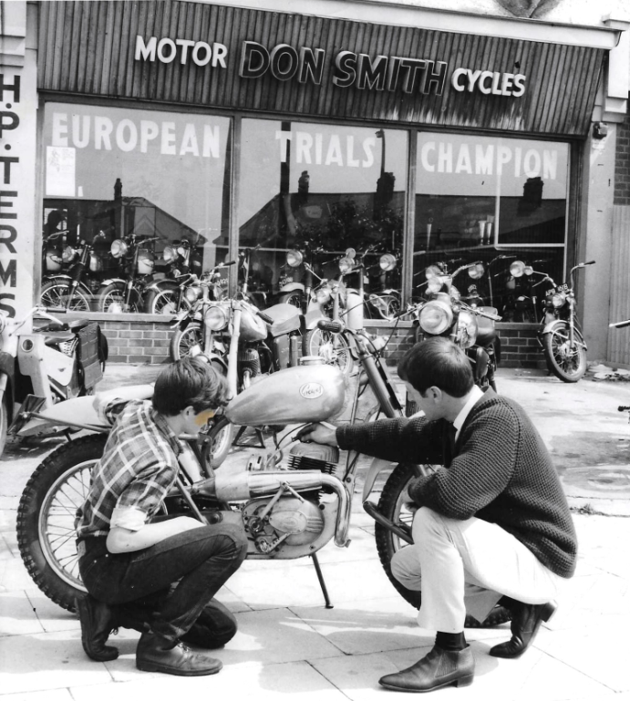 The shop in Highams Park became well known throughout Britain as Don was a great publicist. They came from far and wide to trade in trials machines and buy new replacements. Being a stickler for preparation and his links with Greeves, the second hand bikes were well prepared and many of the Greeves riders dealt with Don Smith Motorcycles. Terry Busch did much of the preparation of the second-hand Greeves trials machines, making them ready for sale, by replacing bent and damaged components and generally making them fit to compete on a Sunday. The shop’s reputation grew as a result.