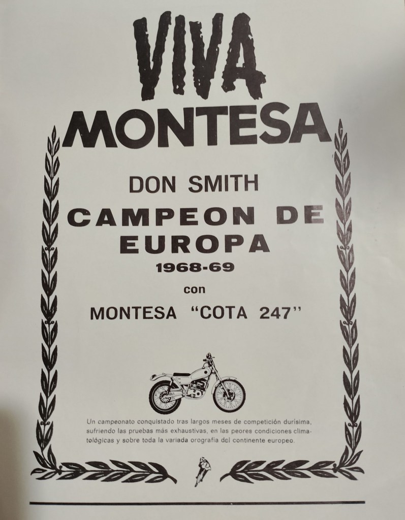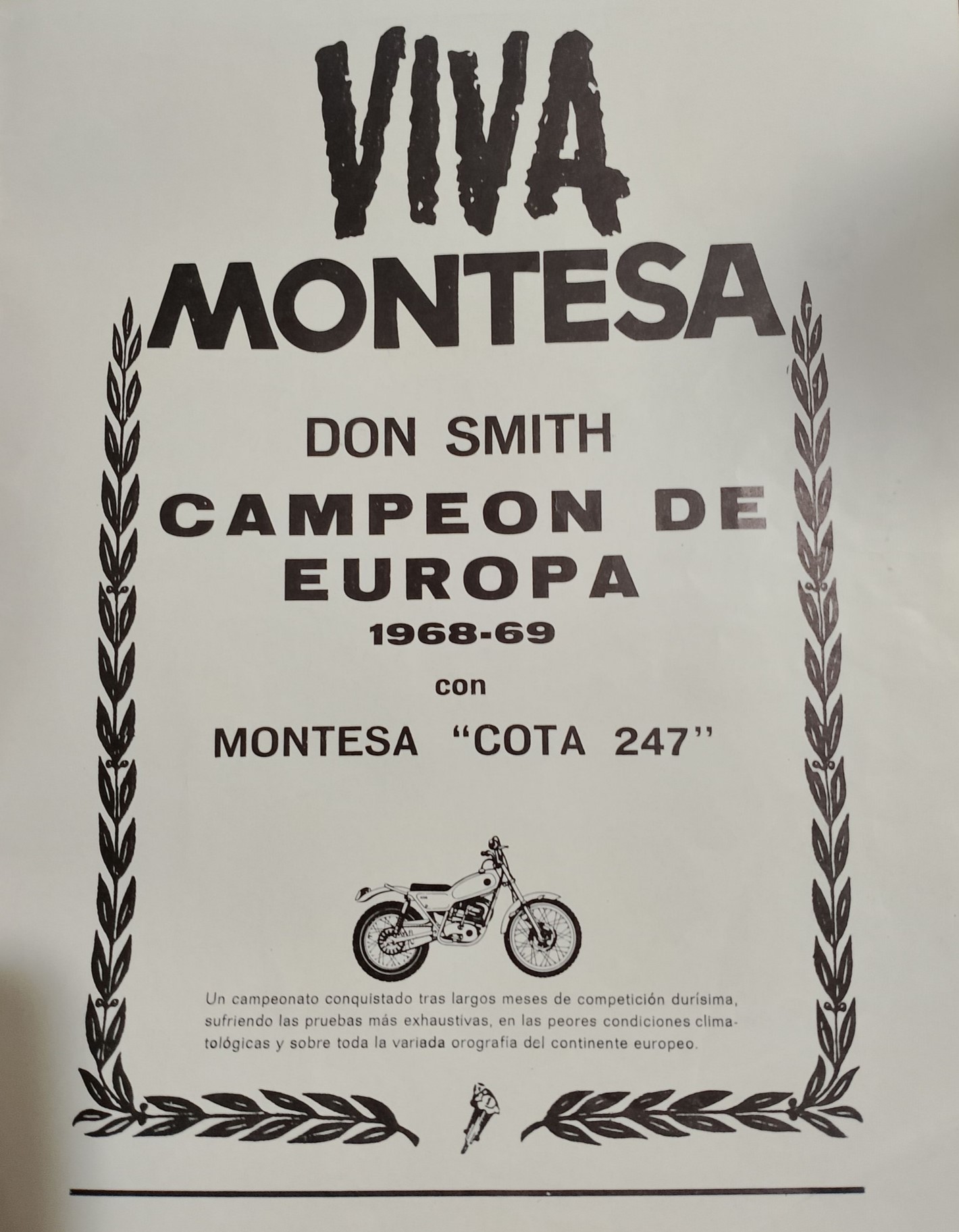 I will drive in the championship of Europe and France all the year 1967 with this prototype, called simply ‘TRIAL’ on the other hand, Don left GREEVES so that he would eventually in May 1968, join me at Montesa with the arrival of the Cota 247 at the Scottish Six Days. What was incredible for me I found myself with a team-mate named Don Smith. For me Don was a legend and I have never ceased to admire his way of driving with finesse and efficiency he was an incredible role model, I watched him a lot in competition, and he taught me a lot by his talent, but I especially keep the memory of a conceived and an exceptional man of kindness”.