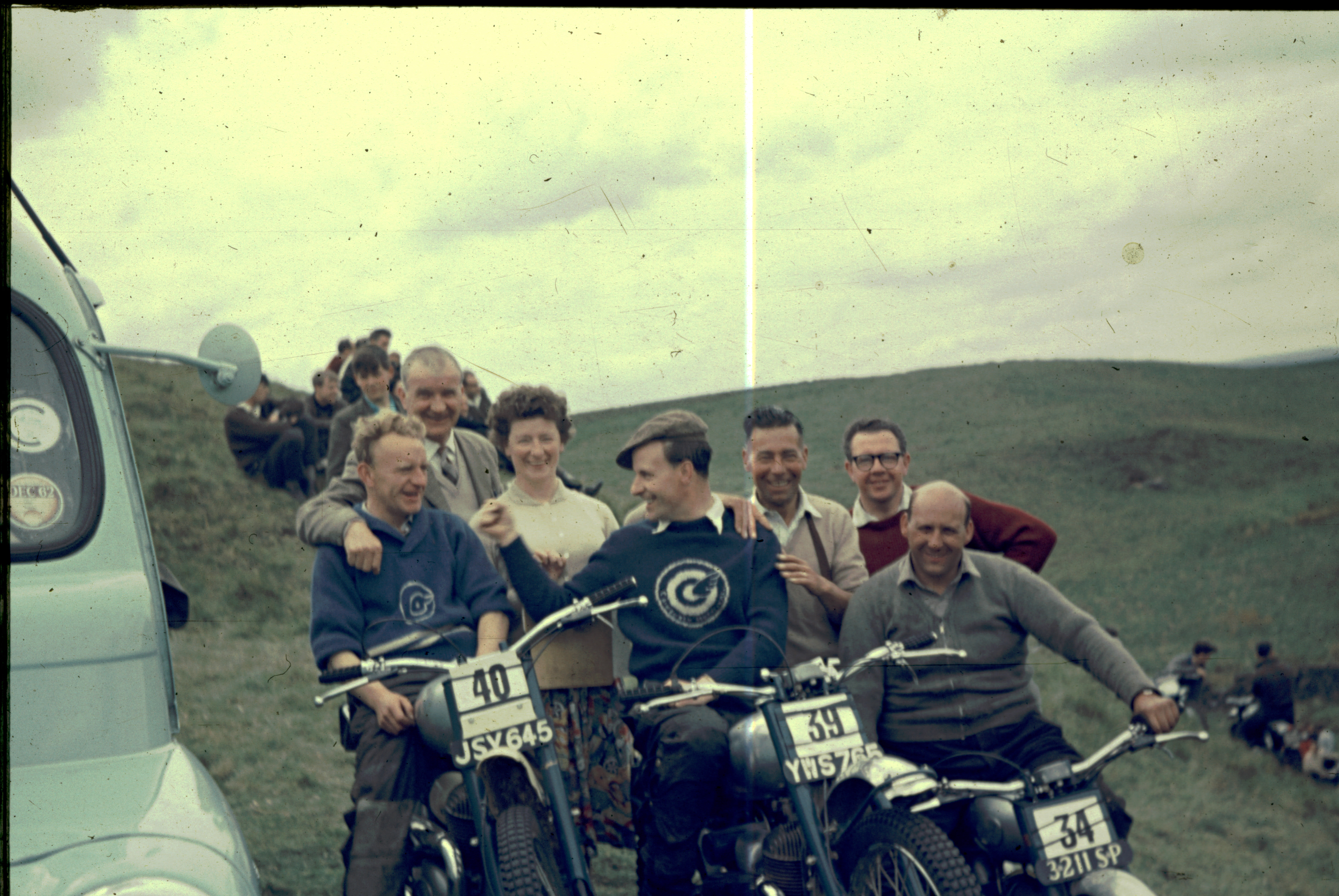 Wached by Lanarkshire secretary, Mrs. Pat Sandham far left with club official, Malcolm Marshall, Hawick rider and former Scottish Champion, Graham F. Smith (240 SWM) at the Lanarkshire ‘Valente Trial’ at Kilsyth in 1979 – Photo: Ian Robertson, Midlothian