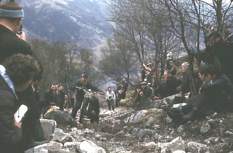 Jeff Smith was 500cc World Motocross Champion in 1964 and 1965. He is a lifelong friend of Arthur and Sid. He then won the prestigious Bemrose Trophy Trial before preparing his 250cc BSA C15T for the Scottish Six Days Trial in the May. Sid was moved into the BSA works team because Derbyshire’s Dave Rowland was asked to stand down in the event that he was called home to attend a court hearing as a witness to a murder enquiry. On the first day Sid lost no marks along with Mick Andrews (Bultaco); Paul England (Triumph); Peter Fletcher (Royal Enfield); Sammy Miller (Bultaco) & Stan Cordingley (Bultaco). Tuesday was a long, tough day taking in 15 sections including ‘Loch Eild Path’ high above the village of Kinlochleven.