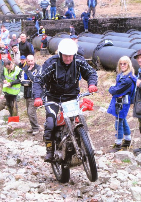 The first rider competing in the Pre65 Scottish Trial to clean ‘Pipeline’ was Tim Bell from Northallerton on his 350cc Royal Enfield Bullet in 1987. First to congratulate him was Ralph Venables who witnessed it first hand. Tim was 5th overall in the Pre65 trial the following year.