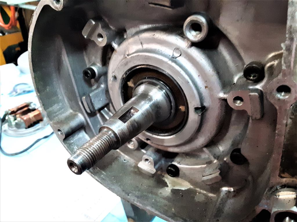 While we’re on the care and feeding of the Yamaha TY250 ignition flywheel, we are going to look at a very, very important part of the assembly that very often gets ignored as it is usually hidden from sight. This is the tapered end of the crankshaft (often called a crank “stub”) that the flywheel mounts on. A very common misconception is that the little half-moon shaped key that fits in the slot on the taper (also called a ‘Woodruff key’) is what keeps the flywheel from slipping on the spindle – not so! It’s only job is to align the flywheel in it’s special spot (‘index’) on the crank when re-installing the flywheel.