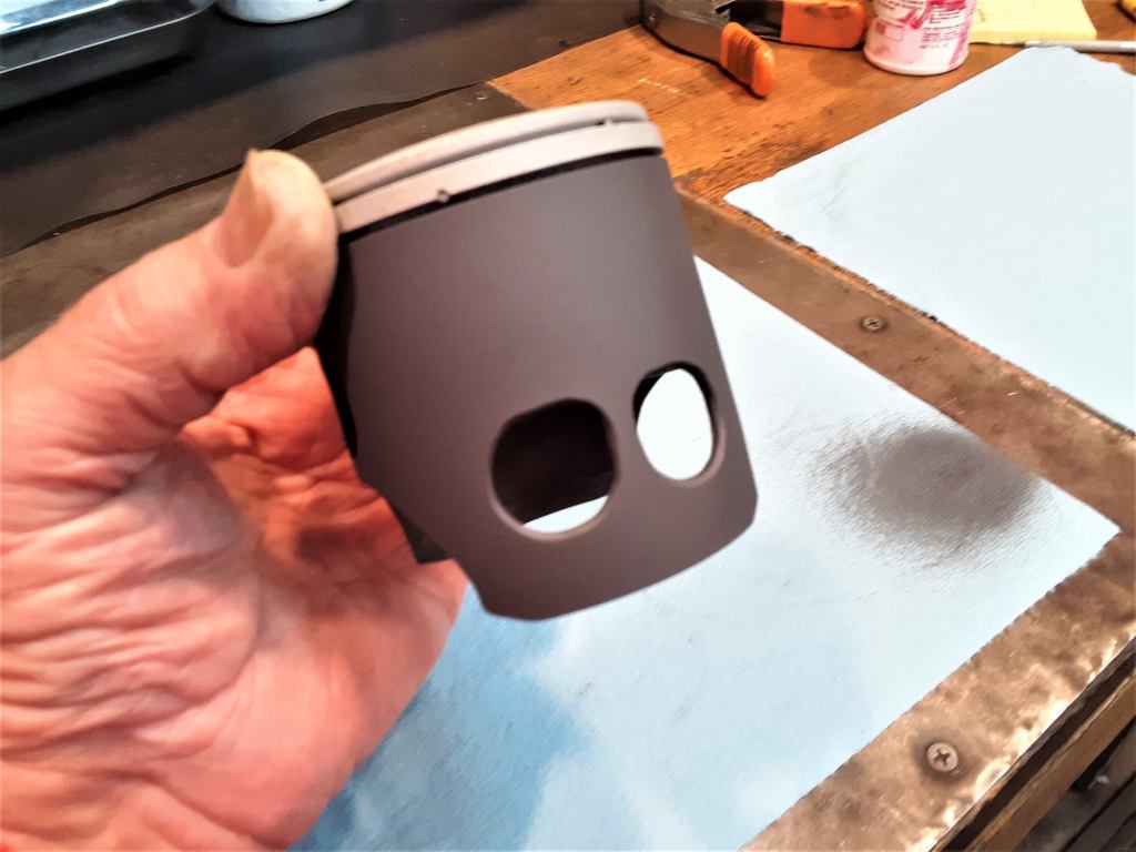 In the modified version, the skirt cutouts have been reshaped and all sharp edges radiused, the piston pin lubrication holes have been enlarged, all the sharp edges of the skirt have been radiused so that they are lubrication spreaders rather than scrapers. Attention was paid to eliminating all ‘stress risers’ where a crack would develop and the skirt was coated with a dry coat of Molybdenum Disulfide (‘MoS2’, operating temperatures -100F to +700F) to reduce friction. If you look at MoS2 very carefully under a microscope, it looks like millions of little, tiny ball bearings and functionally acts the same way to reduce friction. As I’ve said before, details, details, details!