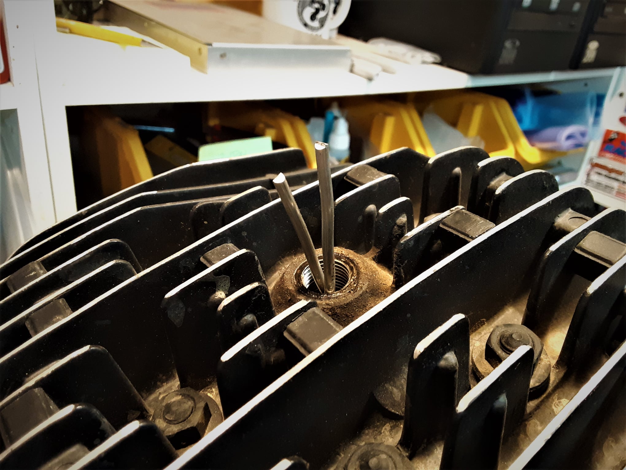 This is a drain plug from a 1976 Yamaha TY250 and when I removed the case drain plug it reminded me a problem that can occur.
