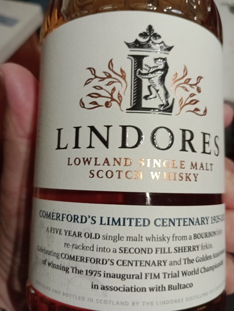 In 2025, Patrick Comerford decided to celebrate and mark the occasion of the 100 years since Teddy Comerford formed the company. Patrick enlisted the help of Trials Guru’s John Moffat, having read this article and Moffat put Comerford in touch with as many ex-employees, riders and Bultaco family contacts. In appreciation of this assistance, Patrick presented Moffat with a bottle of the lowland whisky, being a Private Cask, single malt, distilled, matured and bottled by Lindores in Perth.