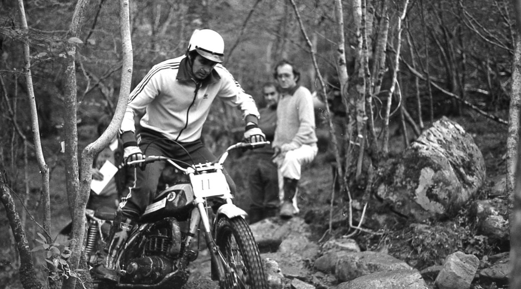 Late in 1975 I rode in my first trial, which happened to be a Southern Centre round. Geoff Guy on a works Ossa won, ahead of all the other stars with Sammy Miller on his factory Honda, Paul Dunkley on a Miller Bultaco, the late Geoff Chandler on his works Ossa, Geoff Monk also on a works Ossa, Pete Anker on a sponsored Montesa and Phil Legg on his Miller Hiro and so on.